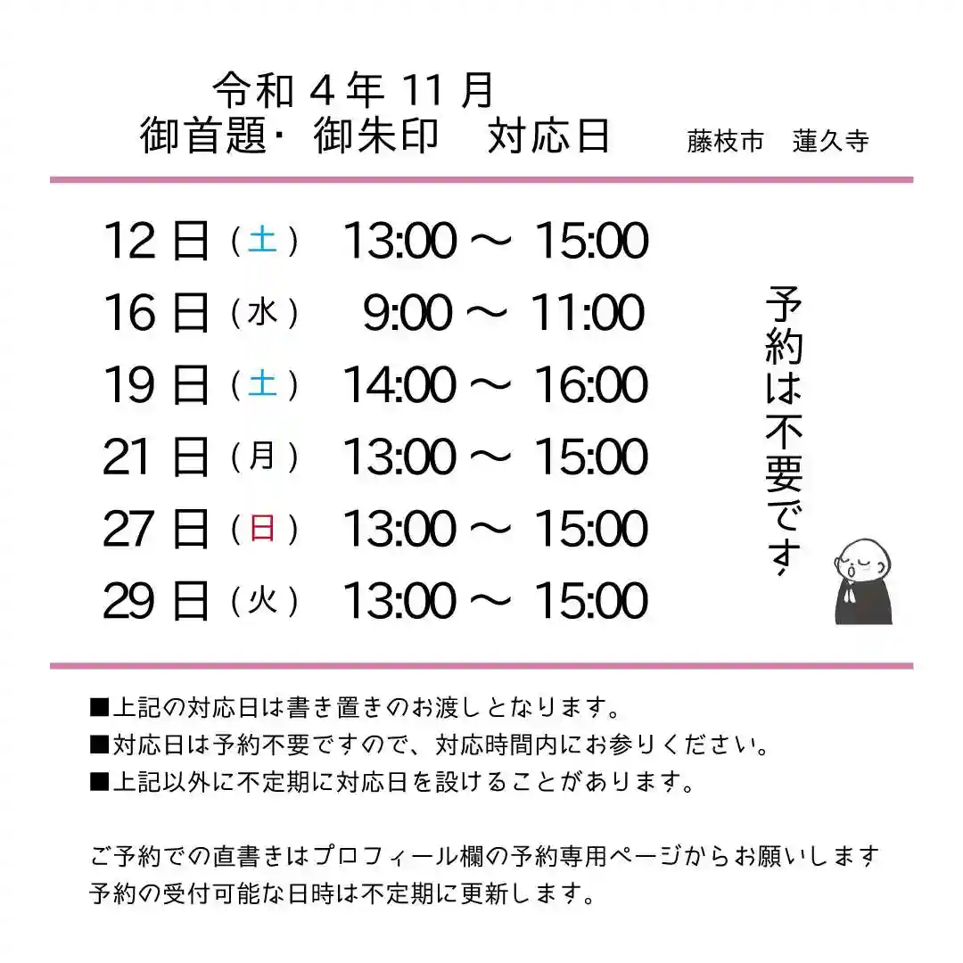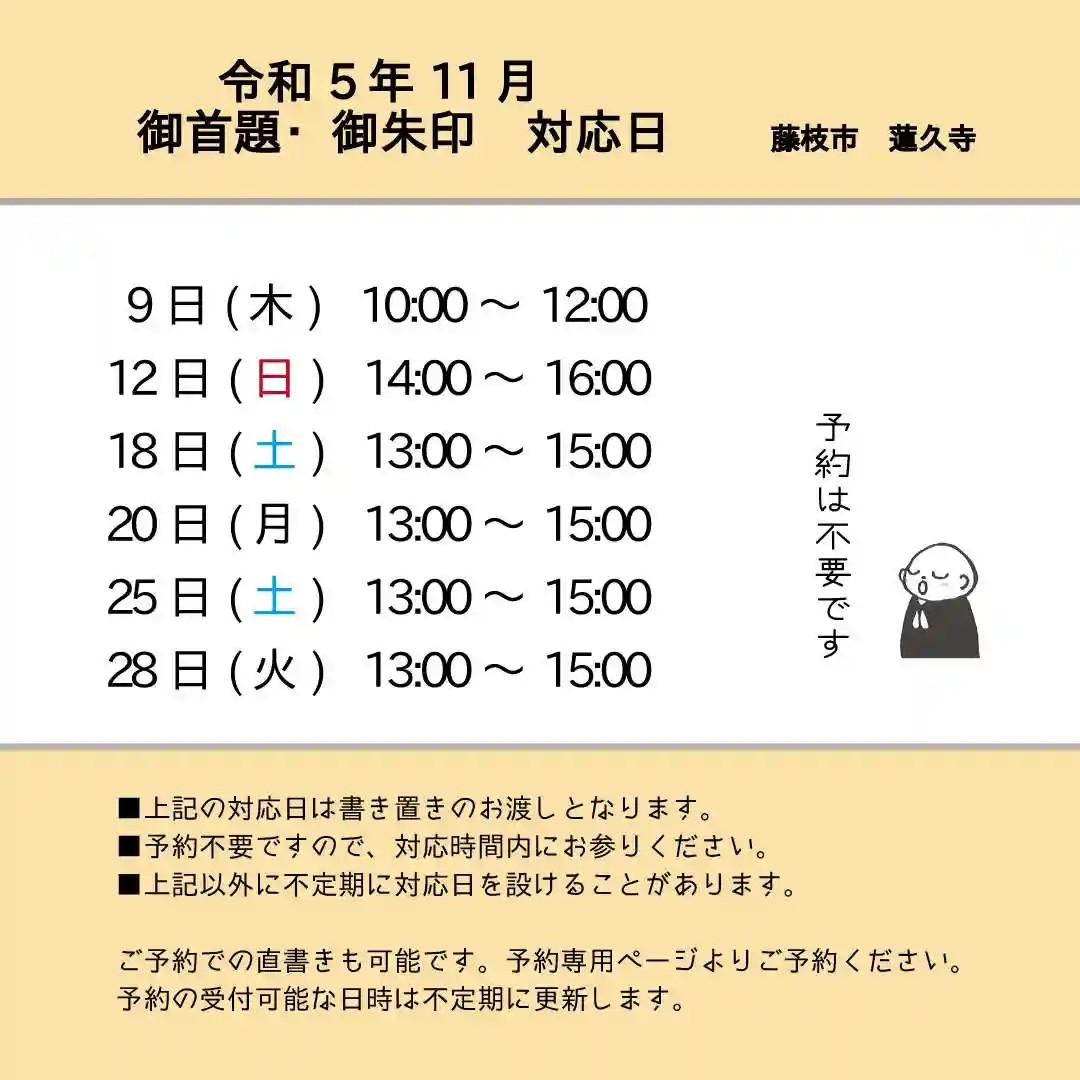 令和5年10月 御首題御朱印対応日