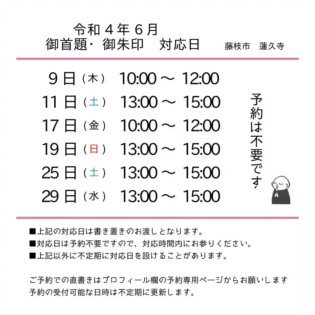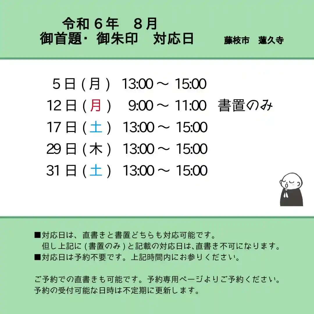 (8月31日) 御首題対応 中止のお知らせ