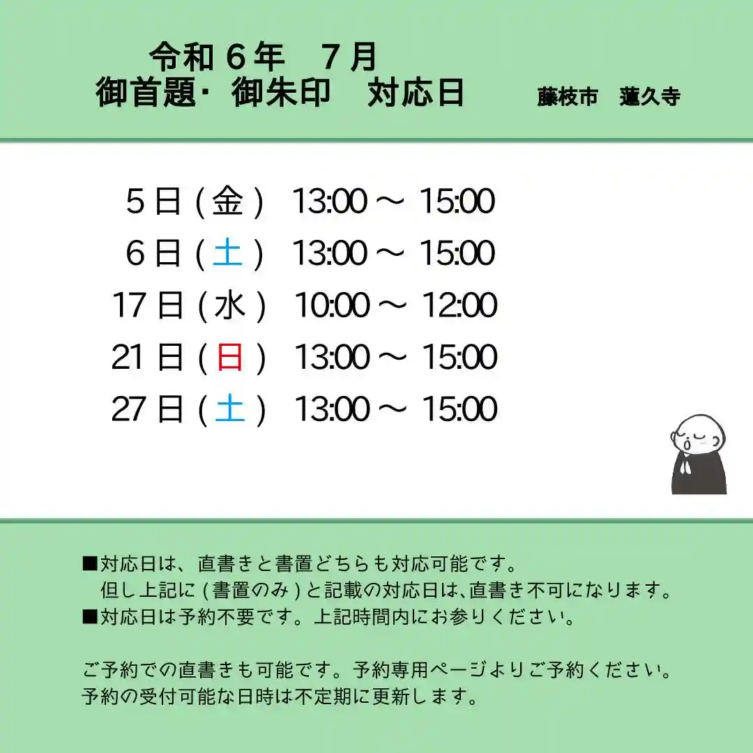 令和6年7月 月替わり御首題 対応日