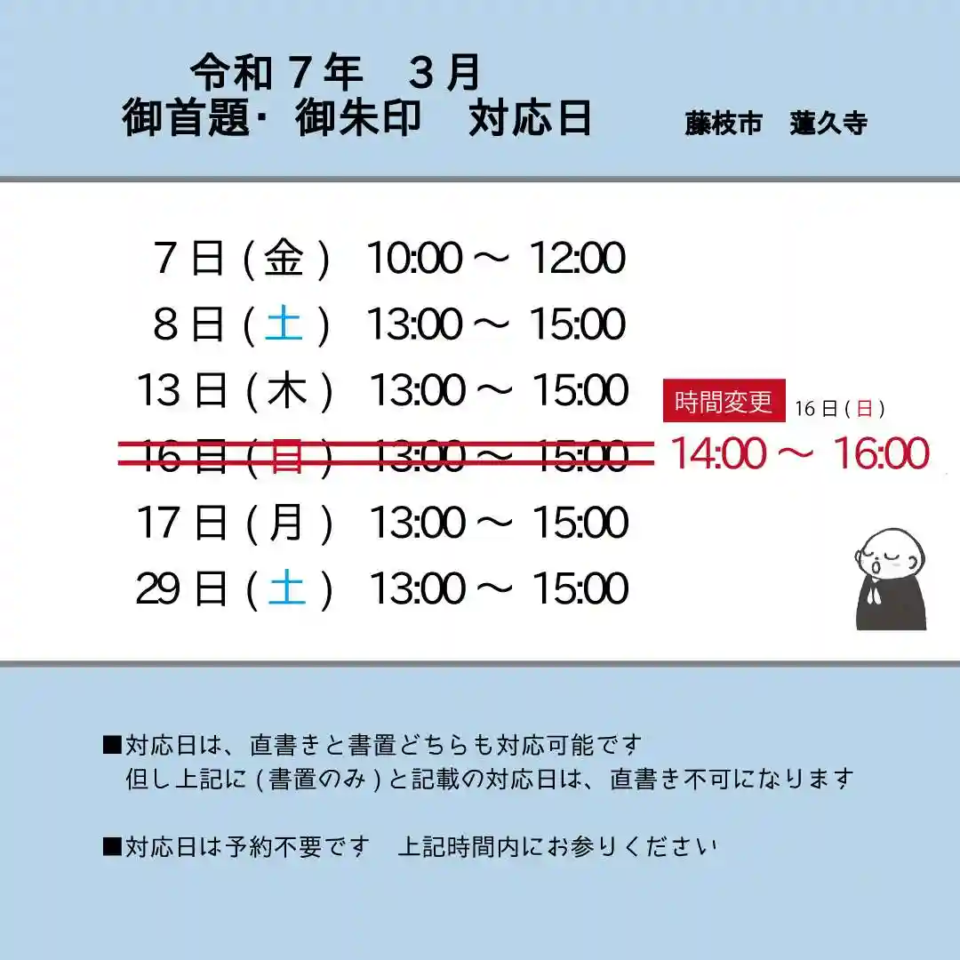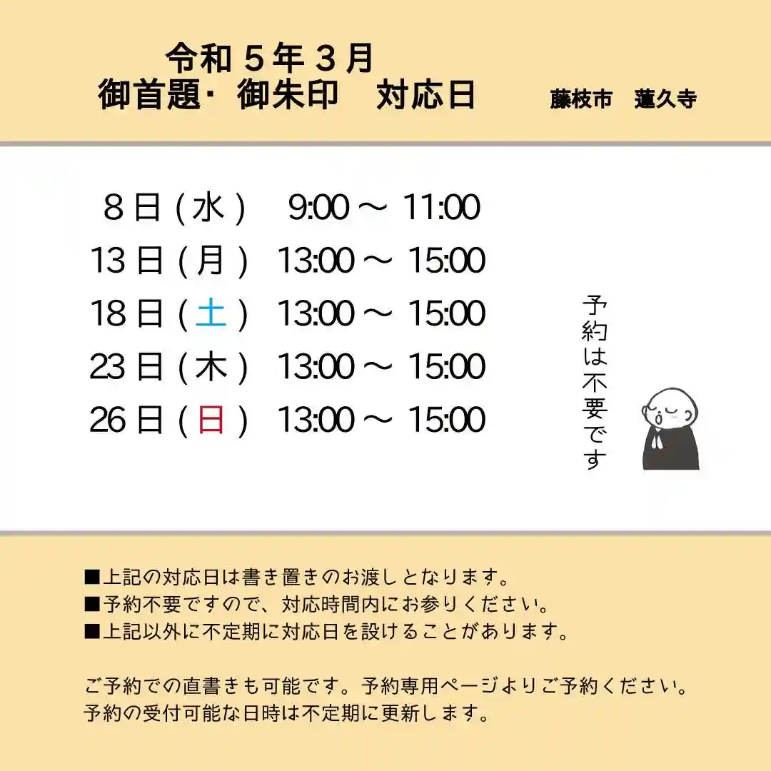 3月の書き置き御首題の対応日は