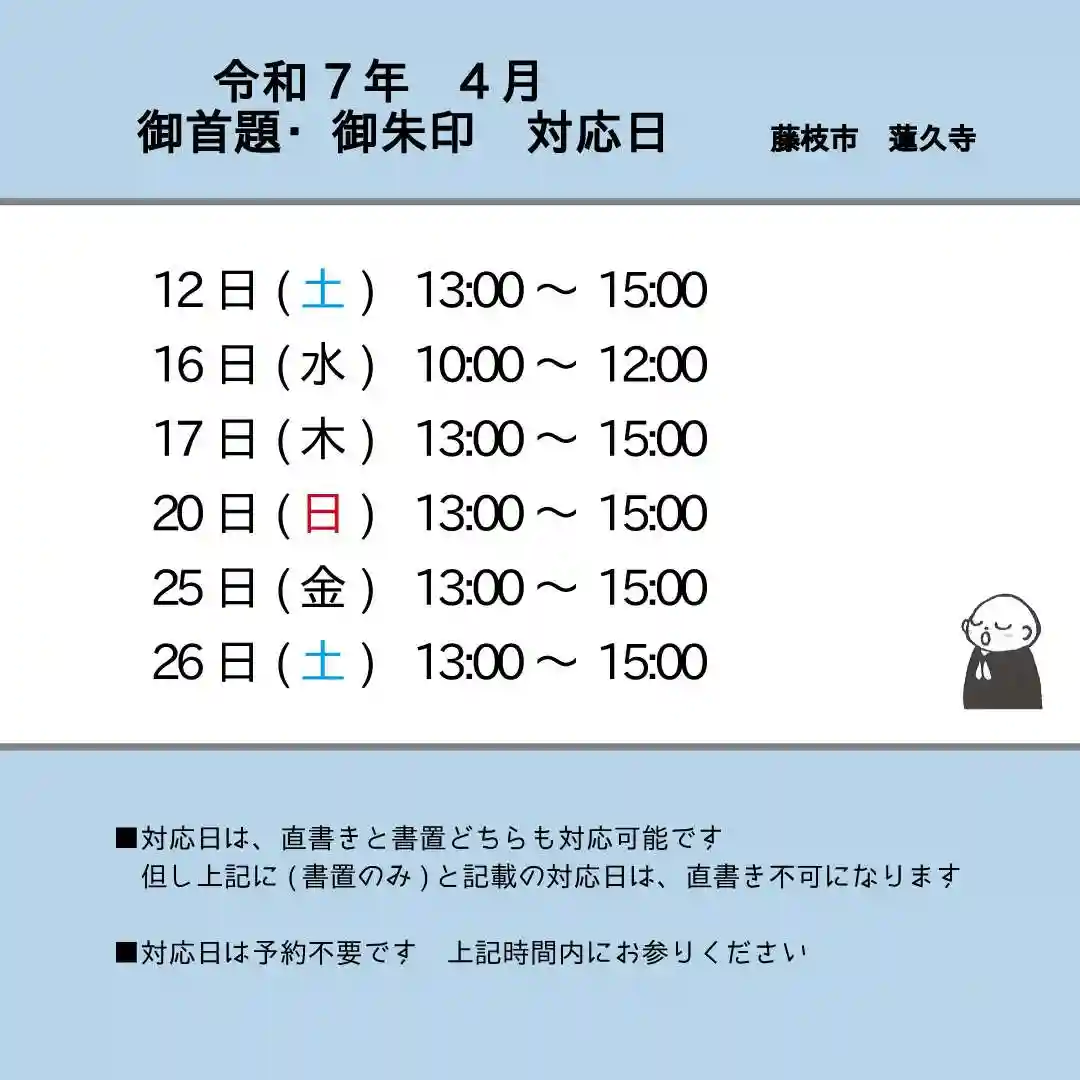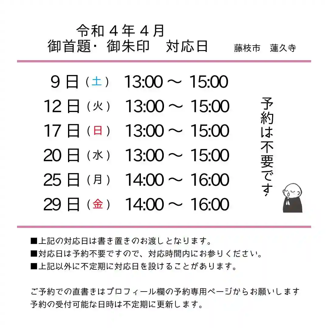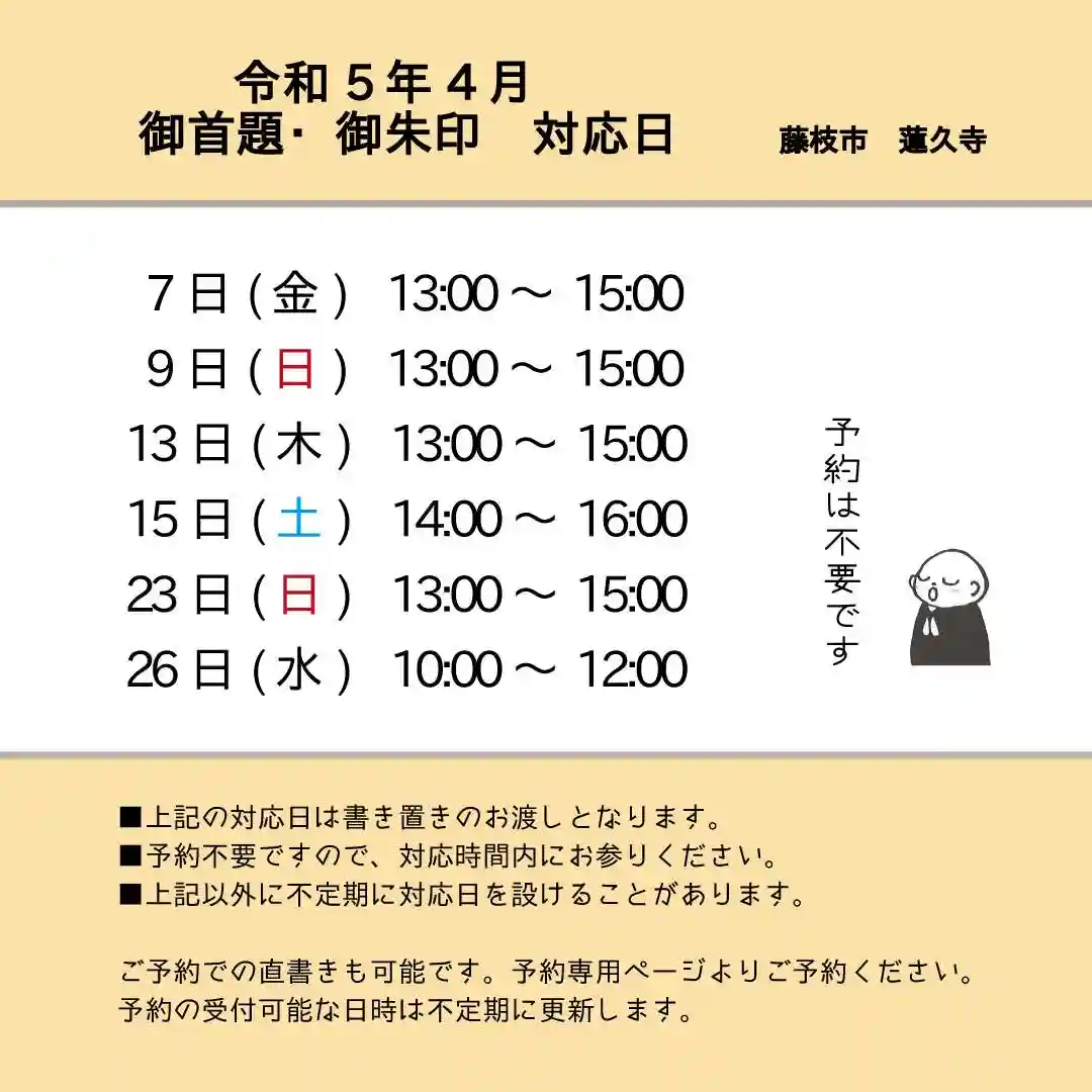 令和5年4月 御朱印、御首題対応日
