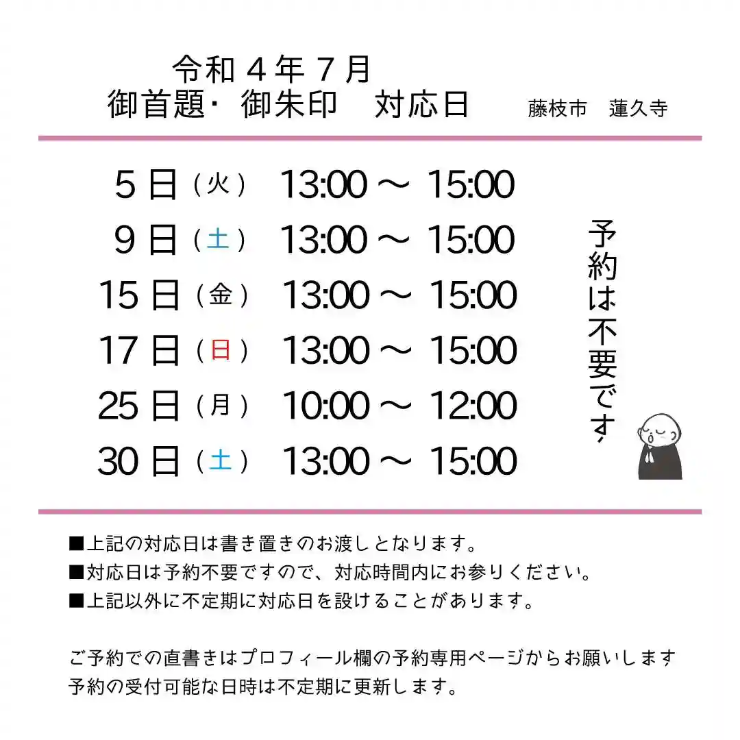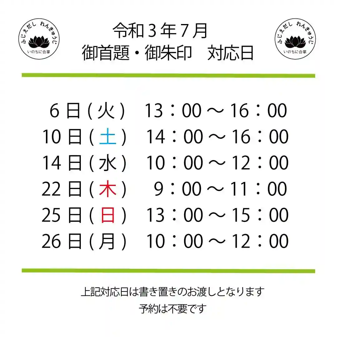 令和4年7月 月替わり御首題 書き置き対応日