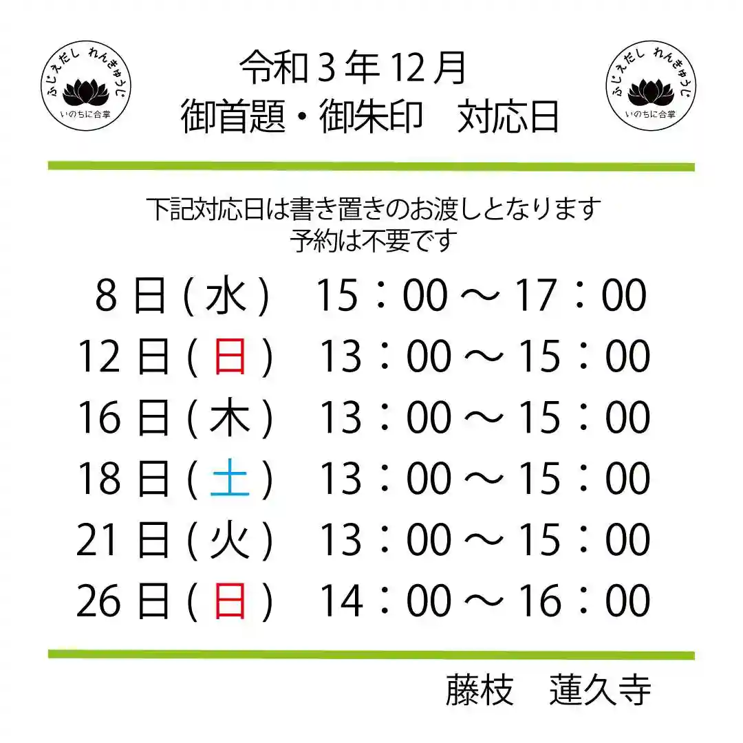 令和6年12月 月替わり御首題 対応日
