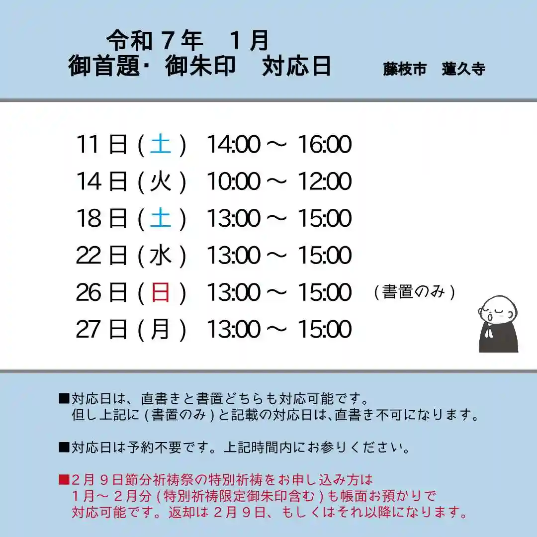 令和7年1月の月替わり御首題対応日