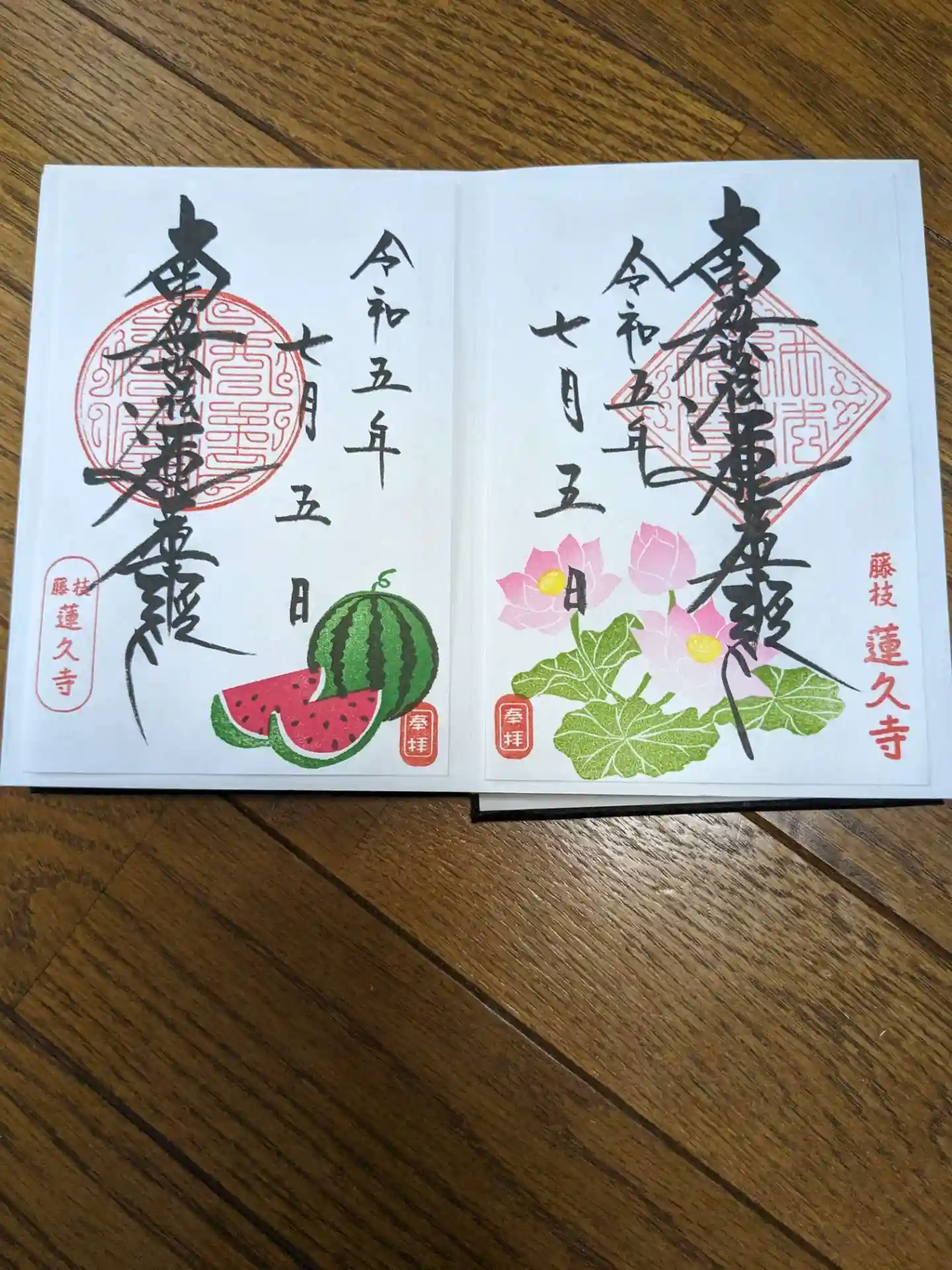静岡県藤枝市の蓮久寺です。直書きの予約がとれたので月参りに。イチゴのかわいい御首題です。
