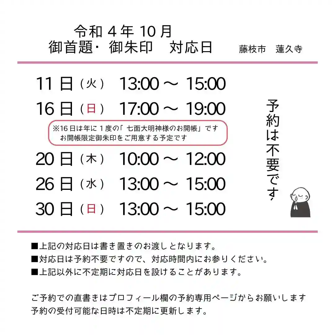 令和3年10月 御首題・御朱印の対応日