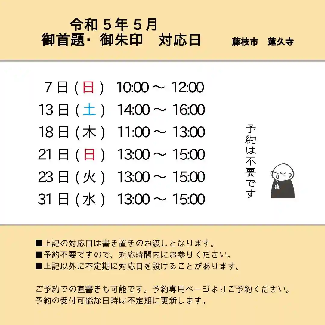 令和5年5月 月替わり御首題 書き置き対応日