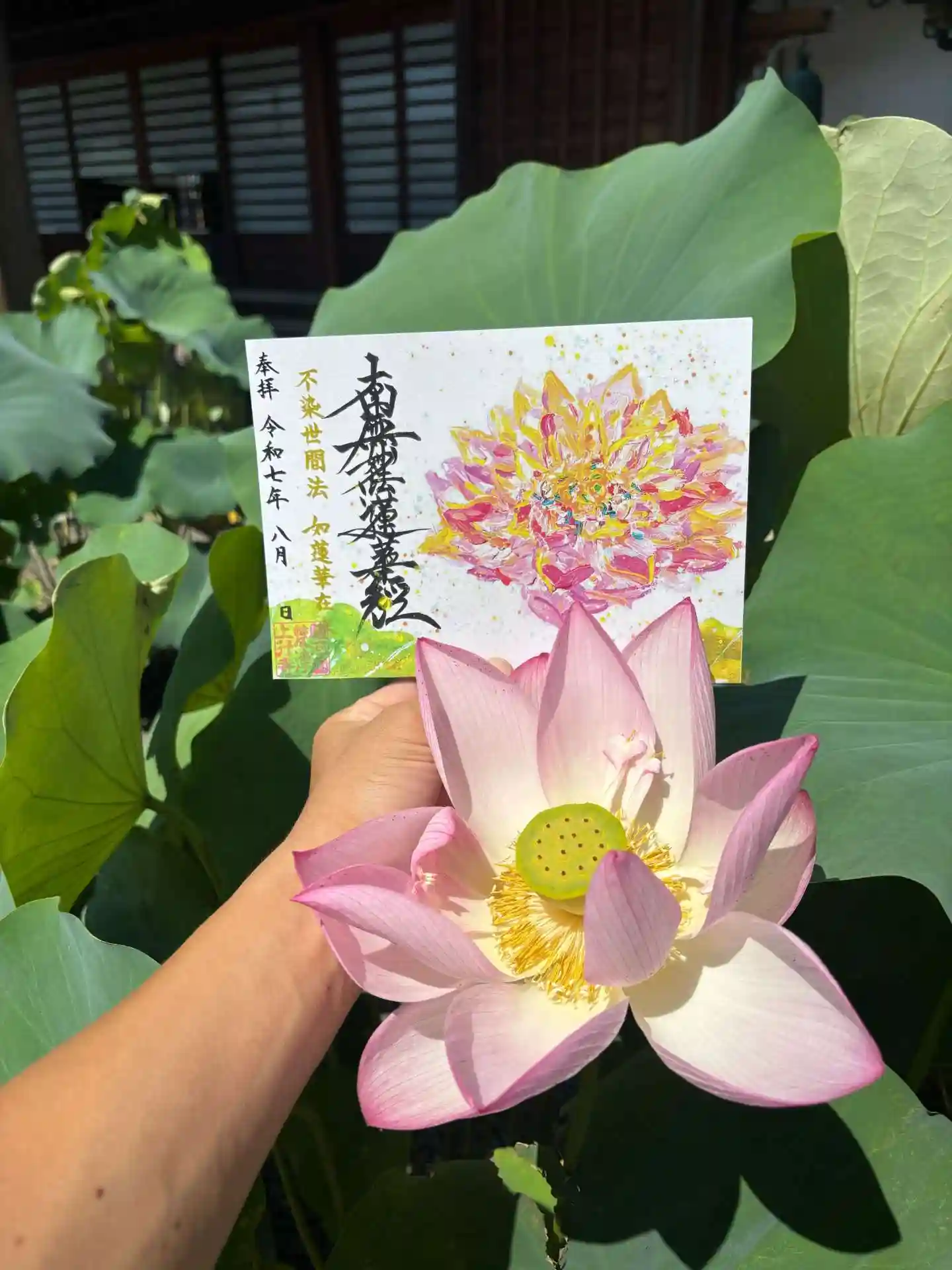 蓮の絵は今回の御首題用に描いていただいたイラストです。