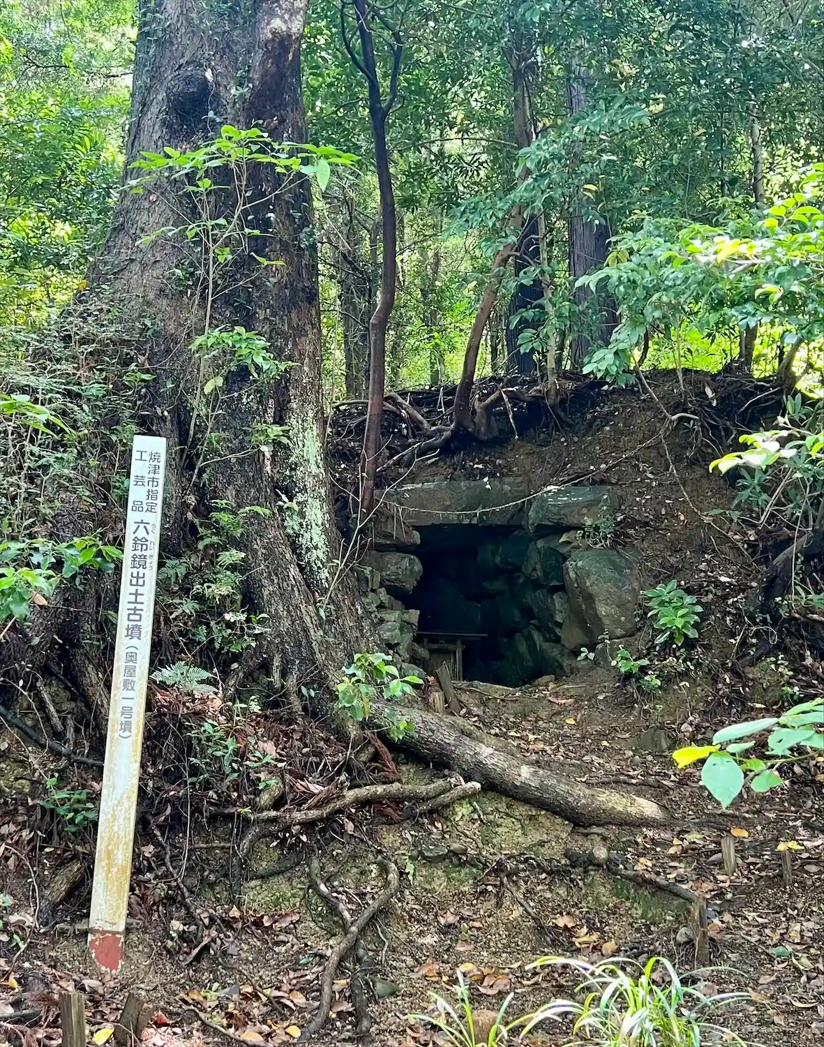 なんとこの古墳からは古墳時代後期の六鈴鏡(6つの鈴が鏡の周囲に着いた銅鏡)が発掘されたそうです。