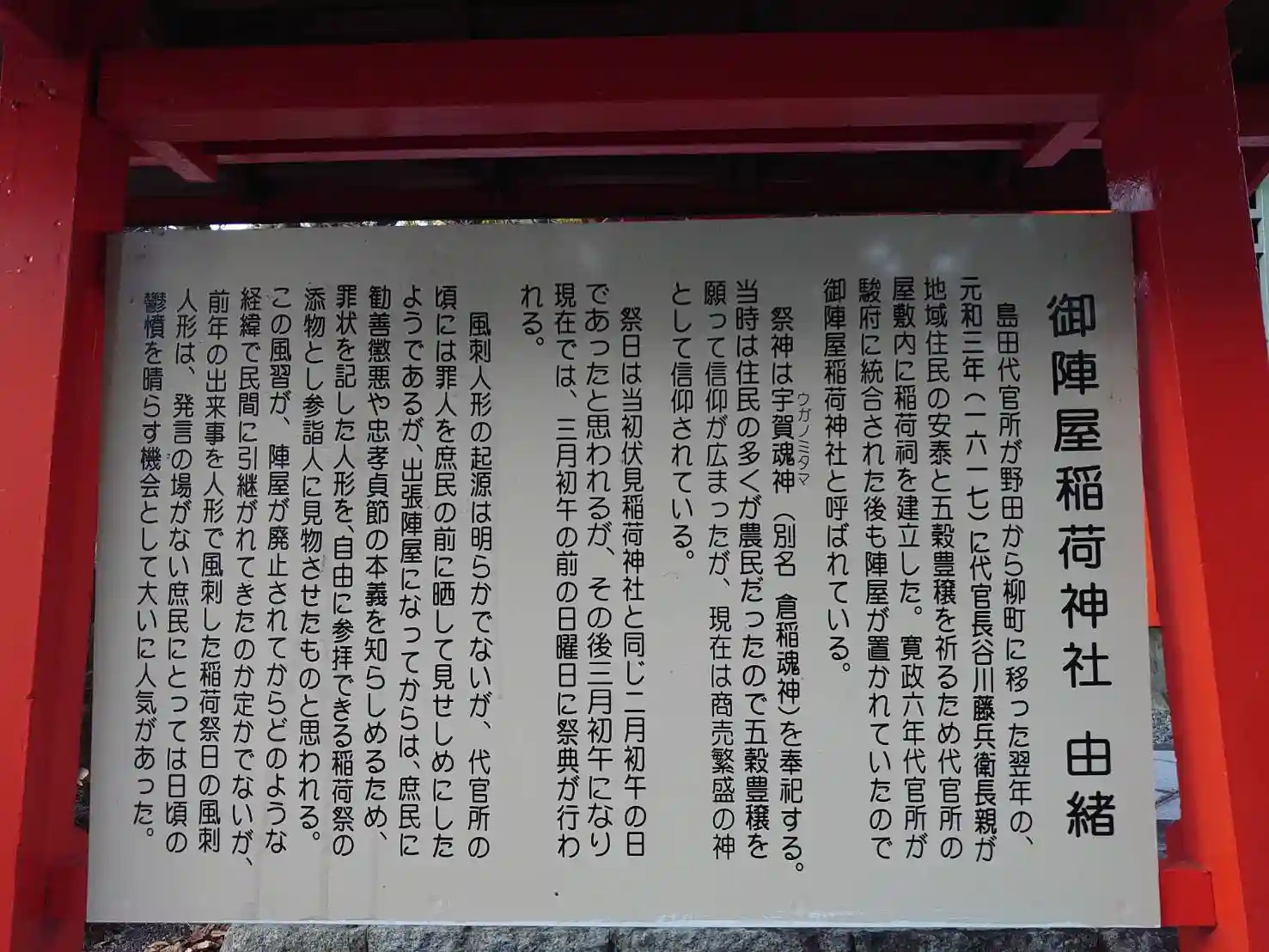 鳥居前に「愛するあなたへの悪口コンテスト」。