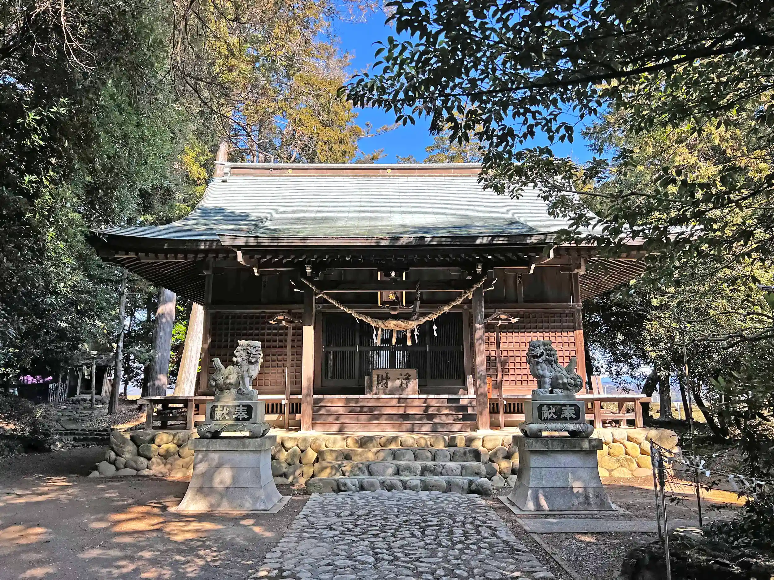 社殿周り全景。空が抜けていて明るい。