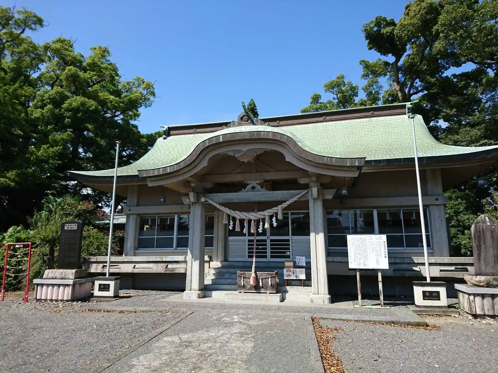 明るく緑の多いお社でした。社殿が明るい色でしたので、より鮮やかに感じました。