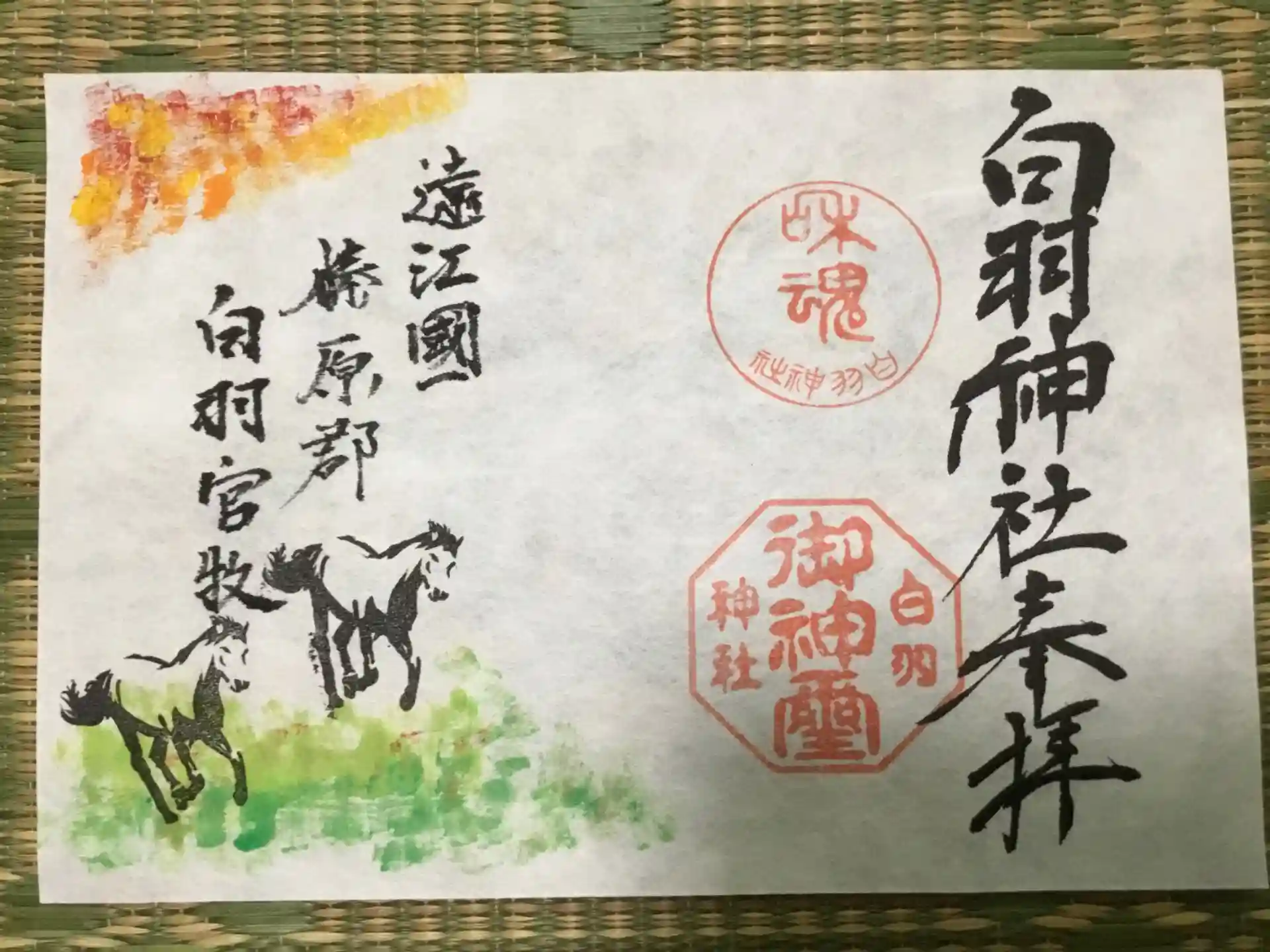 古くより馬に対する信仰が深く現在は交通安全のお参りも多く、白羽官牧を御朱印に取り入れました。