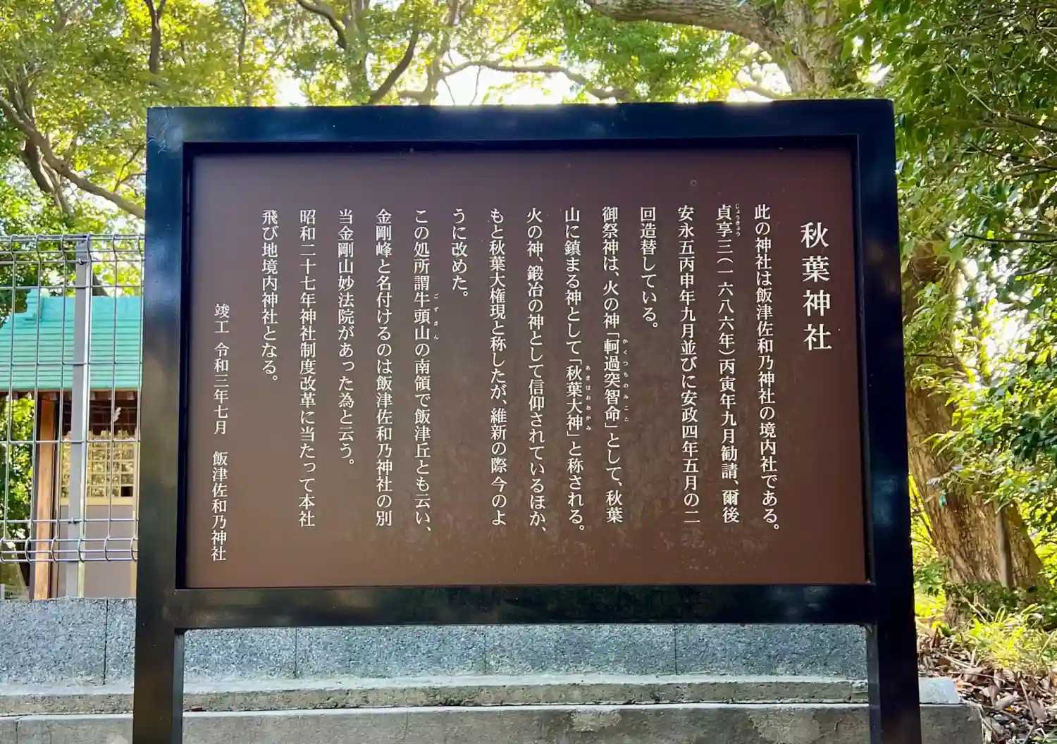 途中たぬきに遭遇しながらも、小高い山の上の秋葉神社へ。