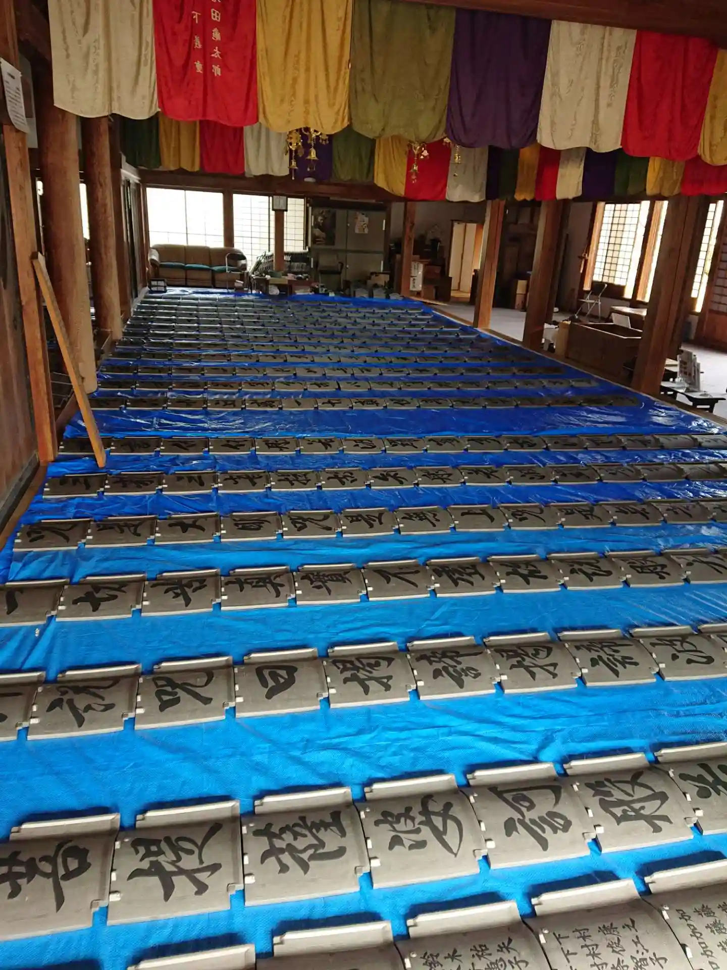 静岡県牧之原市の般若寺です。山門の屋根瓦葺き替えの瓦に般若心経を書いてあり、今日11/8まで見学できるので行ってきました。御朱印は書き置きですが頂いてきました。