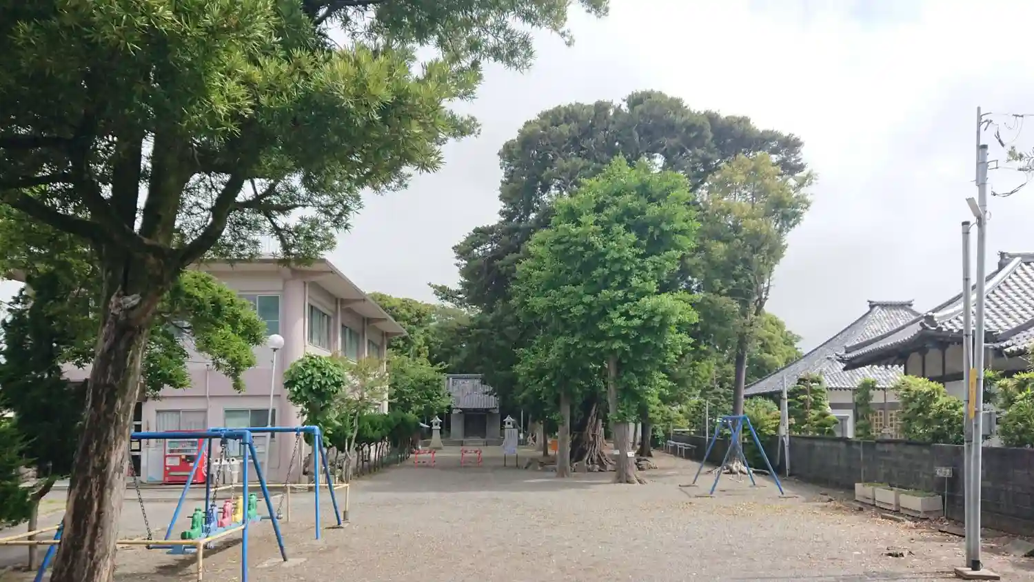 大きな マキ の御神木と、右に「祥雲寺」の本堂とかが見えます。