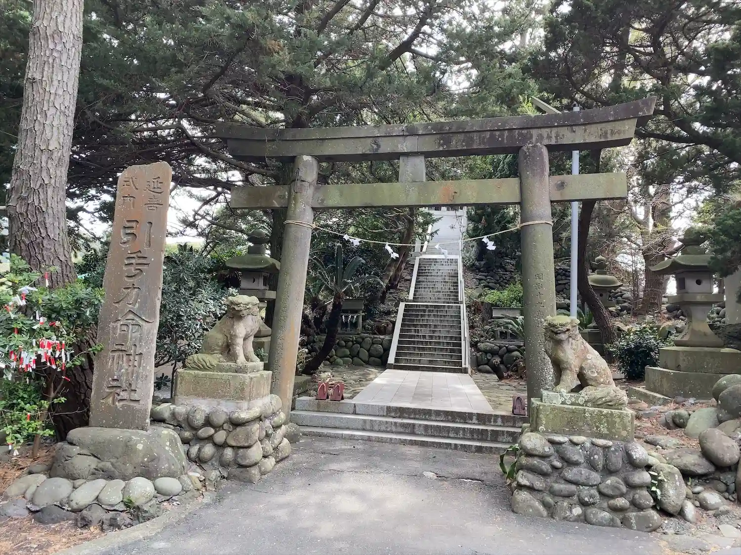 千三百年くらい前の創建とか、大地震で海底が盛り上がって出来たとか、源頼朝にゆかりとか、なかなか興味深い事が書いてありました。
