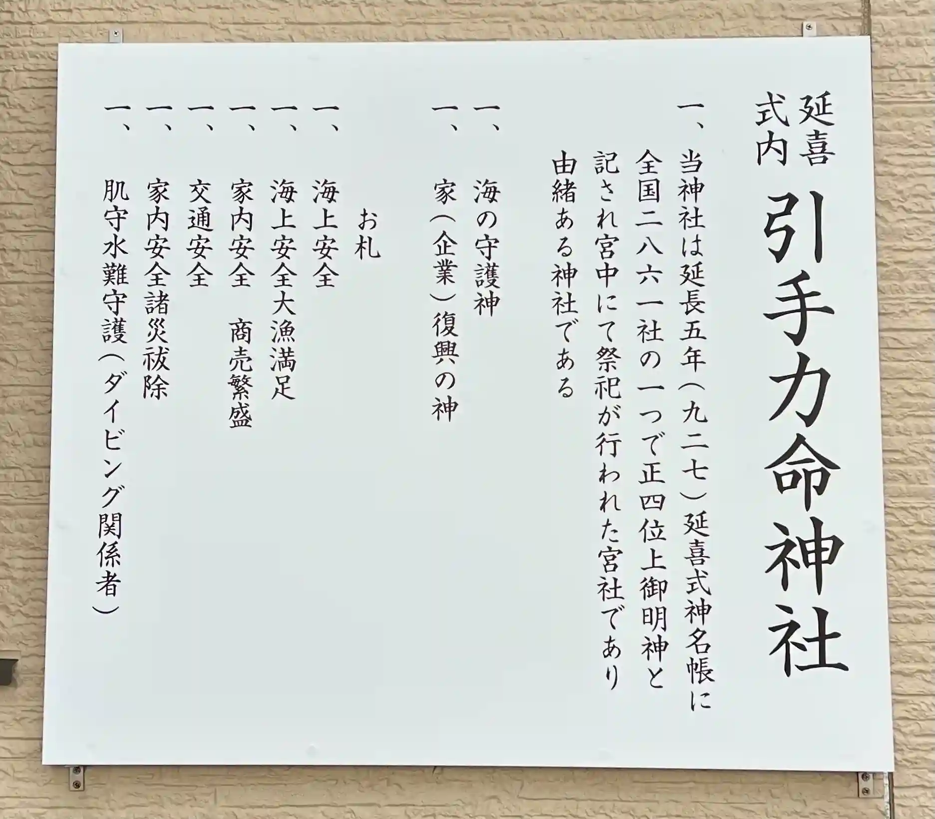 白鳳13年(684年)の大地震で海底が隆起し、「琵琶島」が出現したことに始まります。この出来事を、海に沈んだ土佐国の土地を神が引き寄せたものと考え、引手力命(ひきてちからのみこと)を祀ったのが御由緒です。