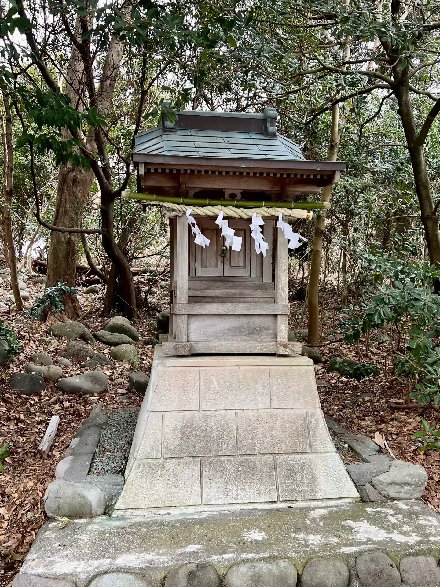 社殿の向かって右端に掛けられた赤い布が印象的ですが…実はこれ、海の安全を願って奉納された赤い褌だそうです。漁船模型なども残され、県指定の有形民俗文化財となっています。