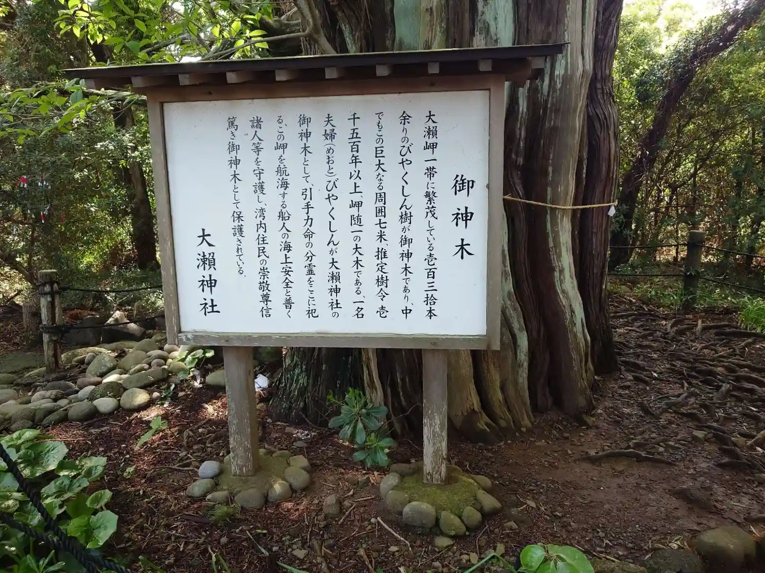 大瀬岬一帯のビャクシン樹が御神木とのこと