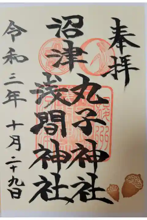 同じ境内で丸子神社と浅間神社2つの御朱印をいただける珍しい一扉二社の形式です。