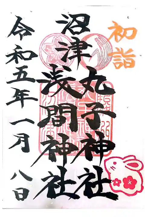 1月中は直書きしていないと言うことで書き置きの金箔銀箔の入った紙に干支のうさぎをあしらった今月の御朱印を頂きました。