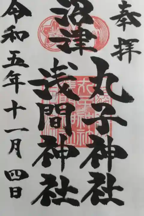 一扉で二社(丸子神社.浅間神社)を祀るという変わった様式で鎮座する沼津の丸子浅間神社。元は近くにあった丸子神社が、火災で社殿を焼失したために相殿となったとのことです。一つの神社でありながら紋は二つあり、御朱印も二社が併記されていました。