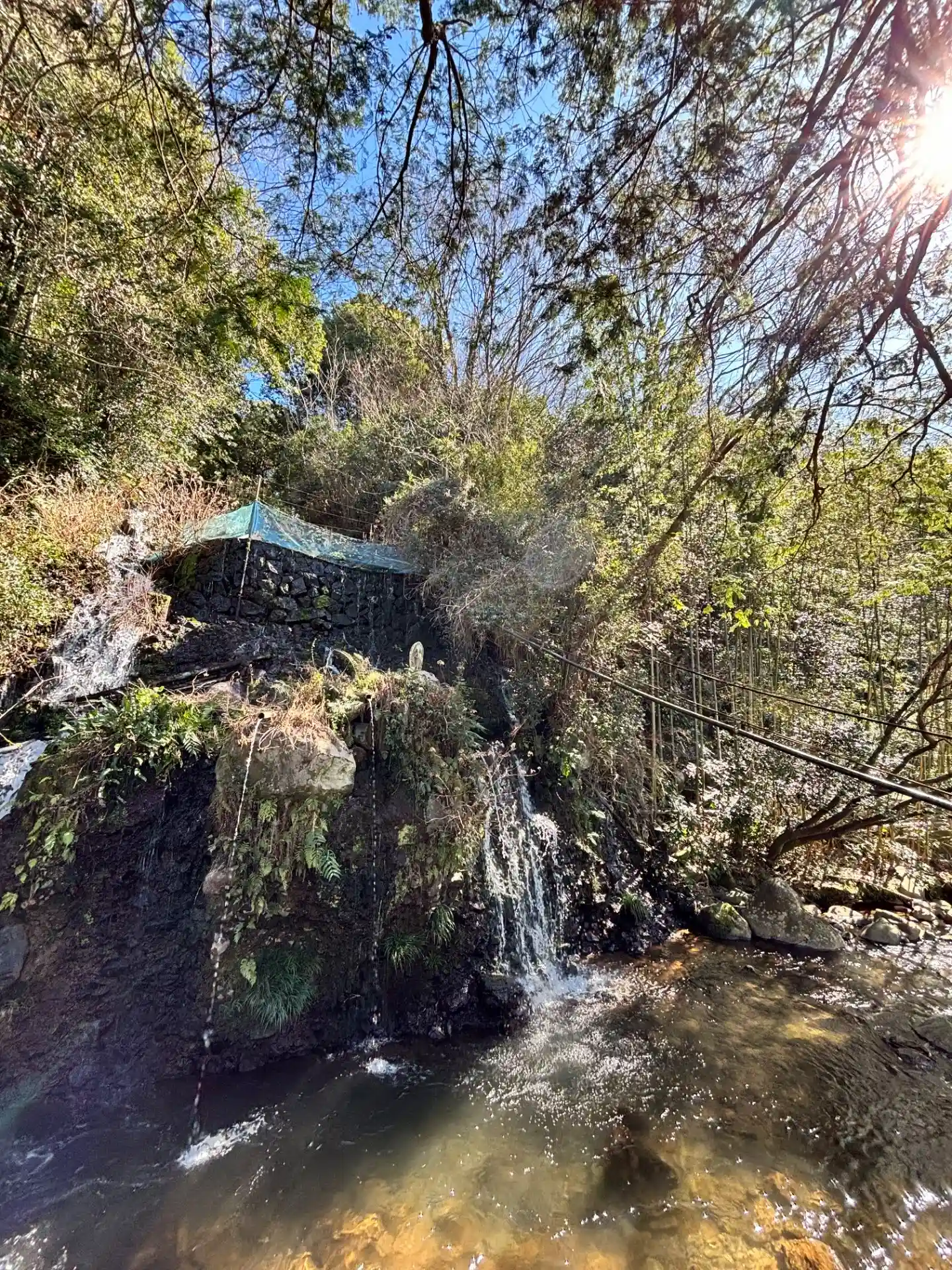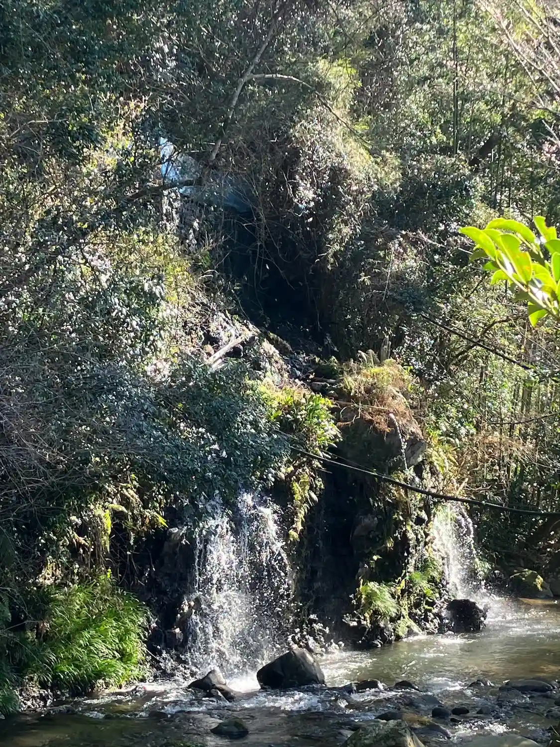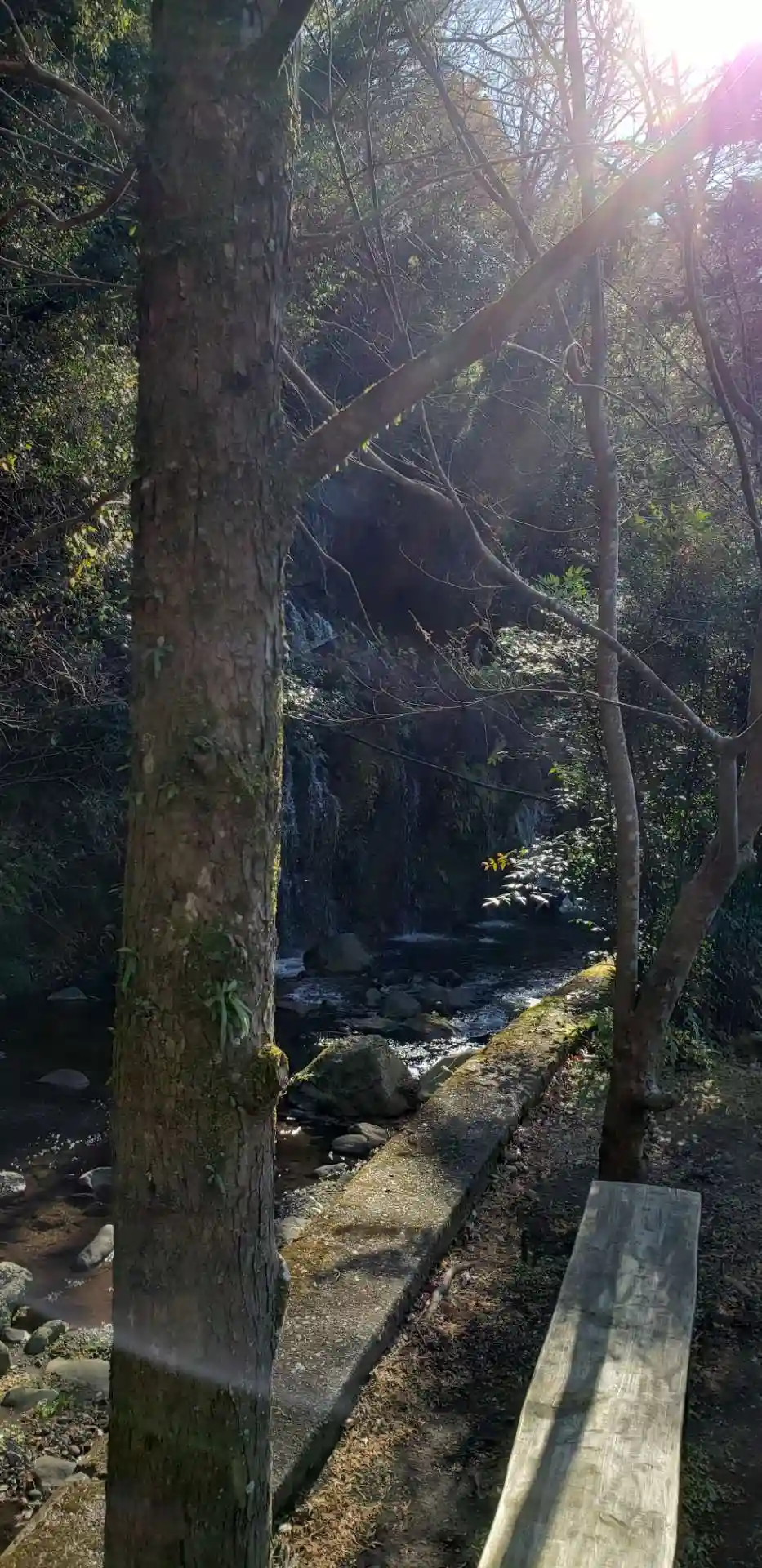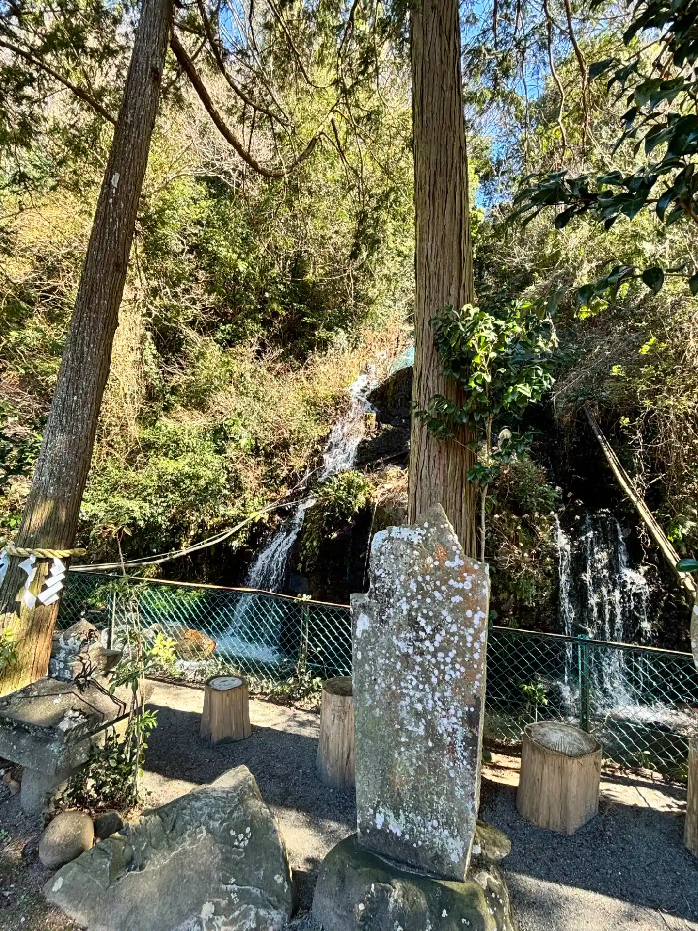 滝があります。マイナスイオンを感じます。