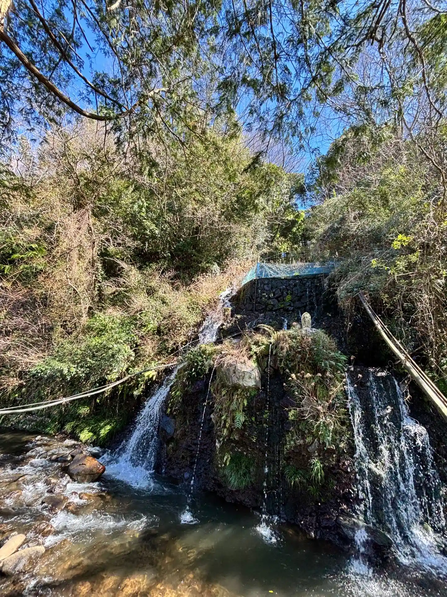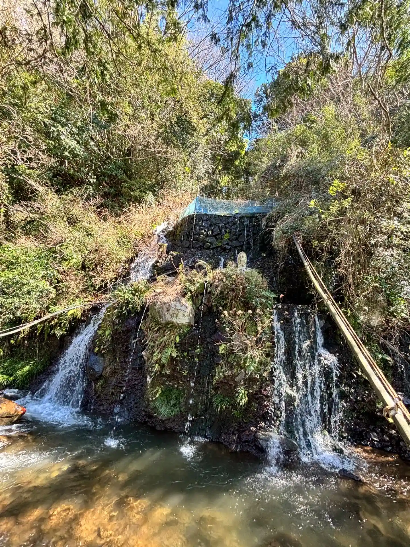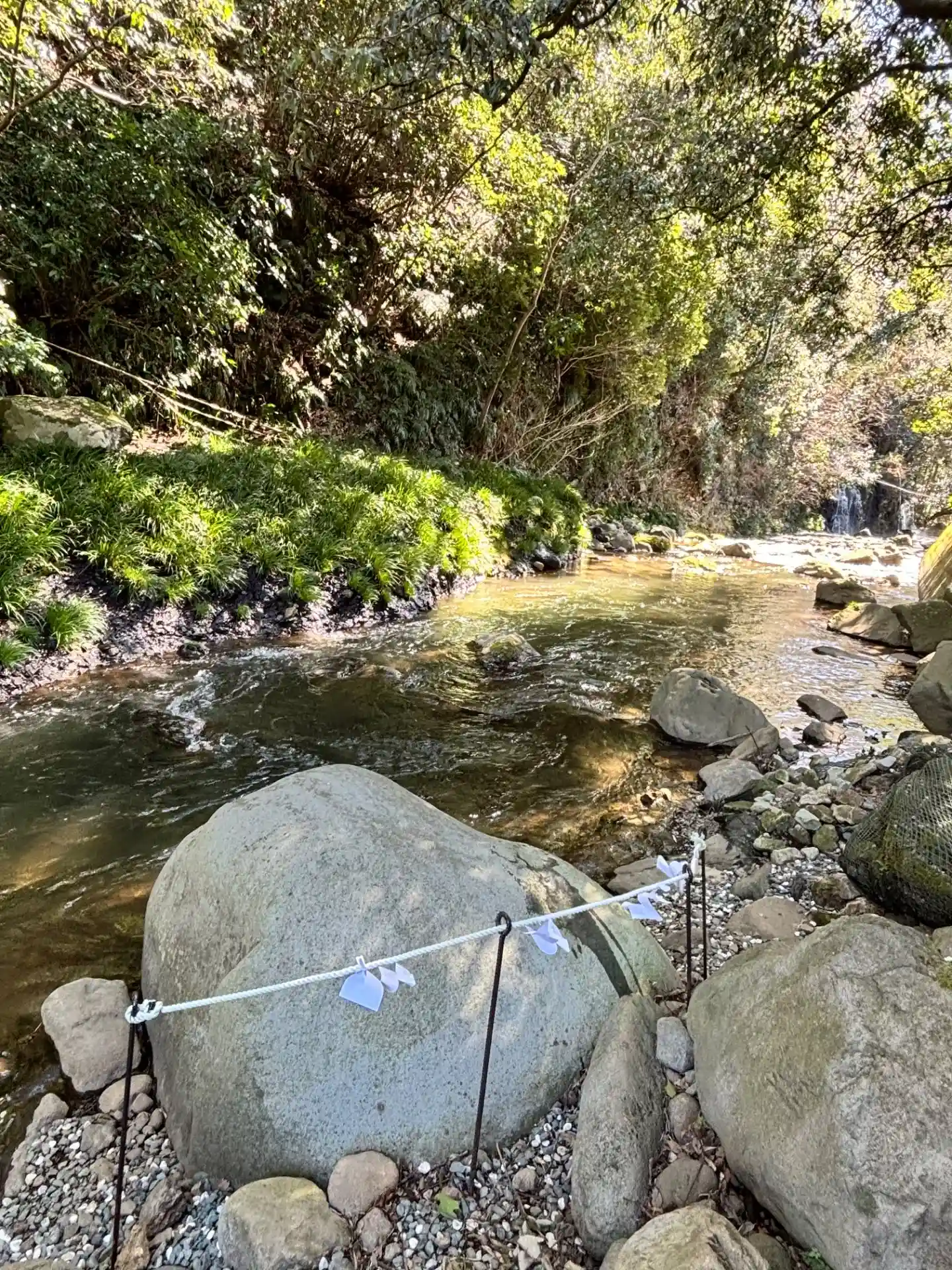 滝があります。「祓いたまえ」川の水で悪いもの流してくれてる感じがします。