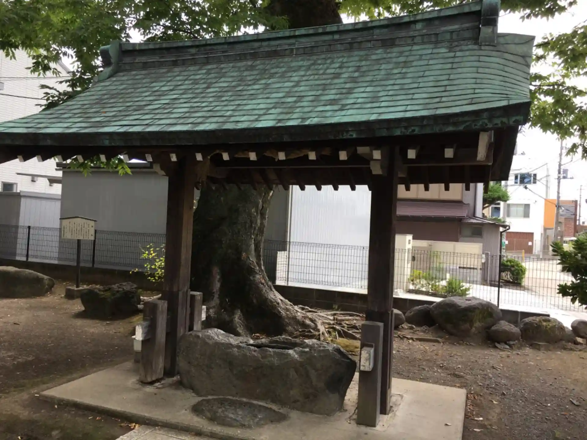 駐車場がないので、車は近くのコインパーキングか、頑張って横付けか(物理的には停められなくはないです)。楊原神社を左手に三島田町駅方面に少し進んだところに駐車場はありました。境内に車を置ける余裕はありますが、チェーンスタンドが設置されていて車が入れないようになっていました。グーグルマップのストリートビューで見えない箇所がありますが、そこに進んでも境内には入れません。