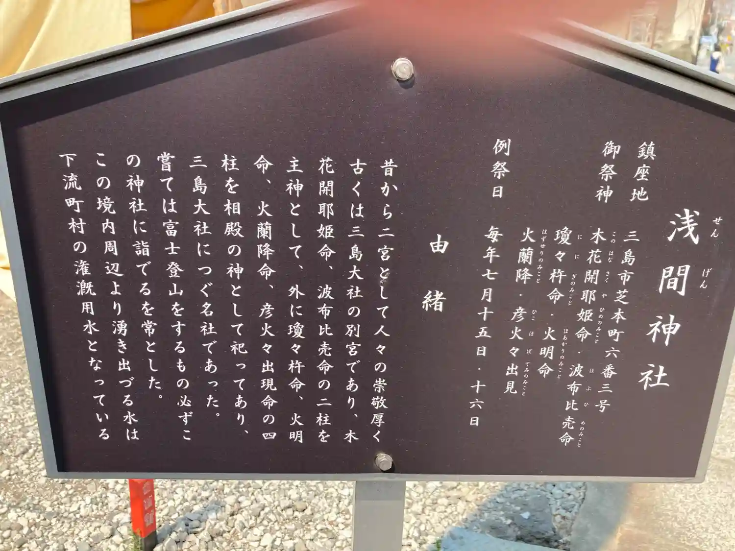 浅間神社の社号標