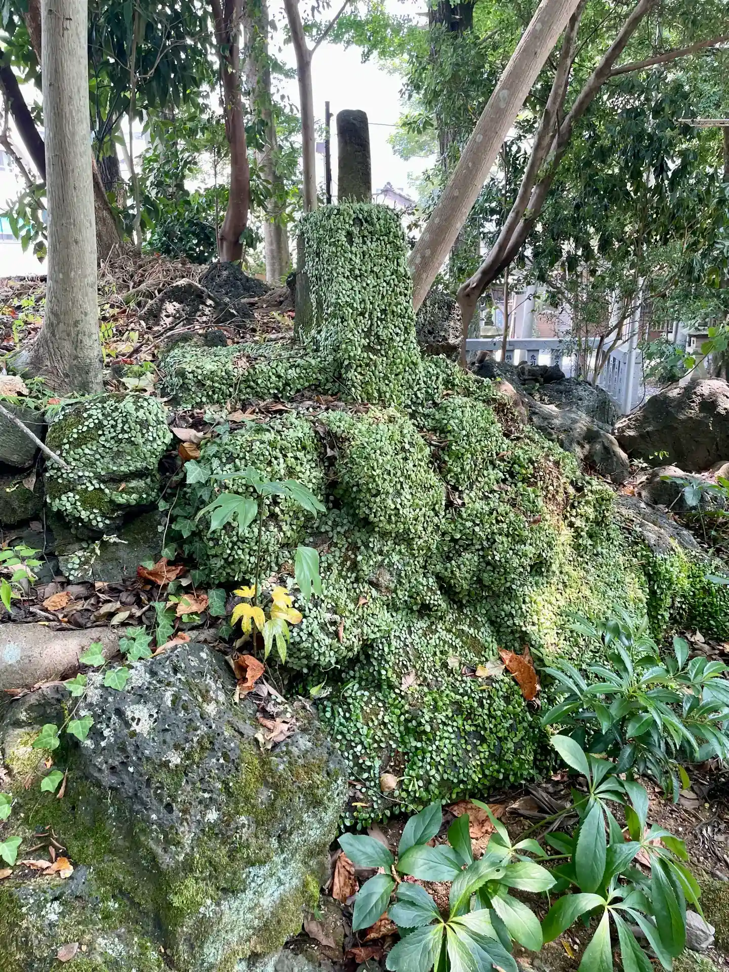木々におおわれていて、街中にありますか神秘的な神社でした。
