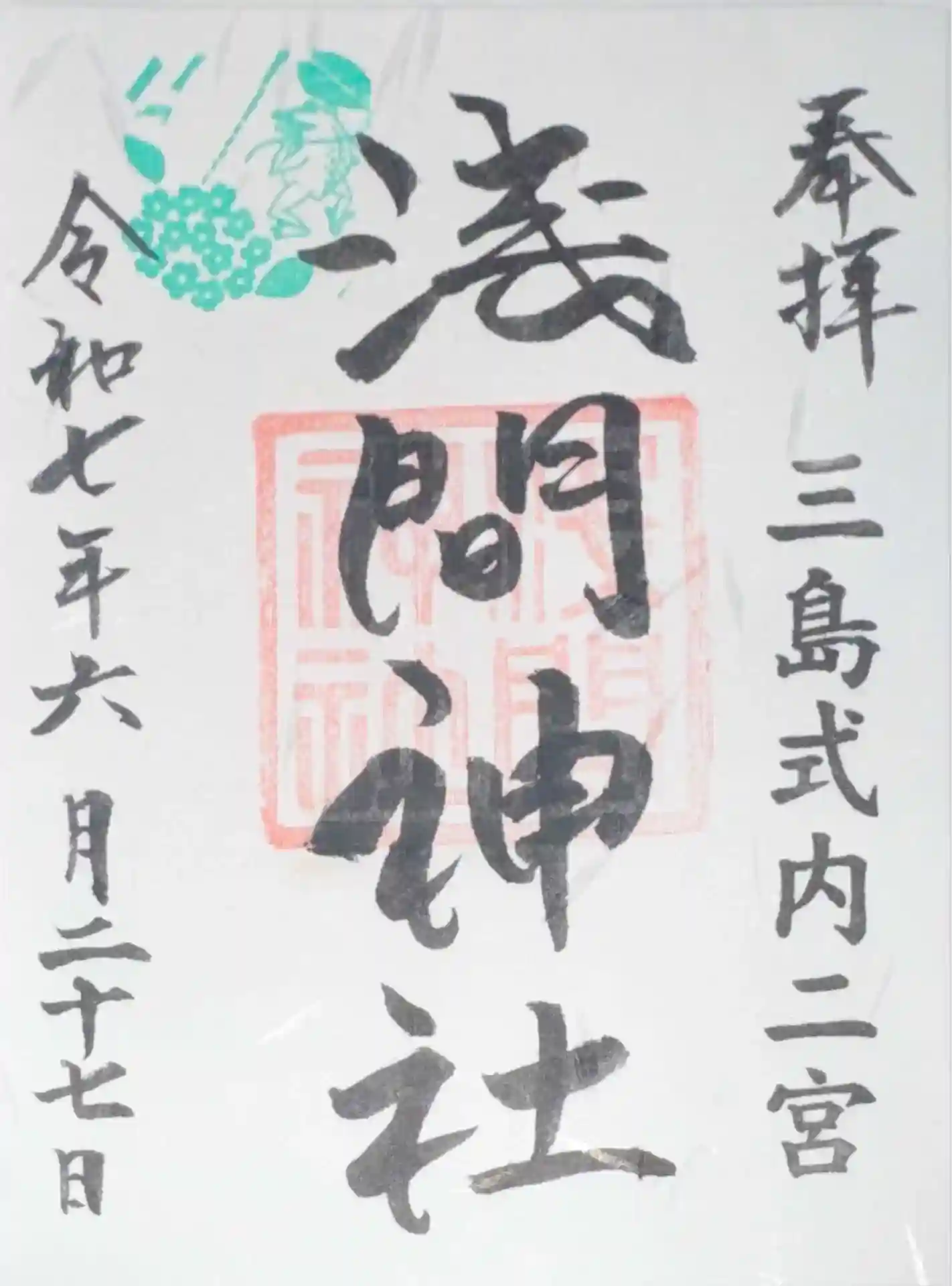 三嶋大社のそばにある神社です。御朱印は近くのお花屋さんで頂けました。少し季節によって御朱印変わって…