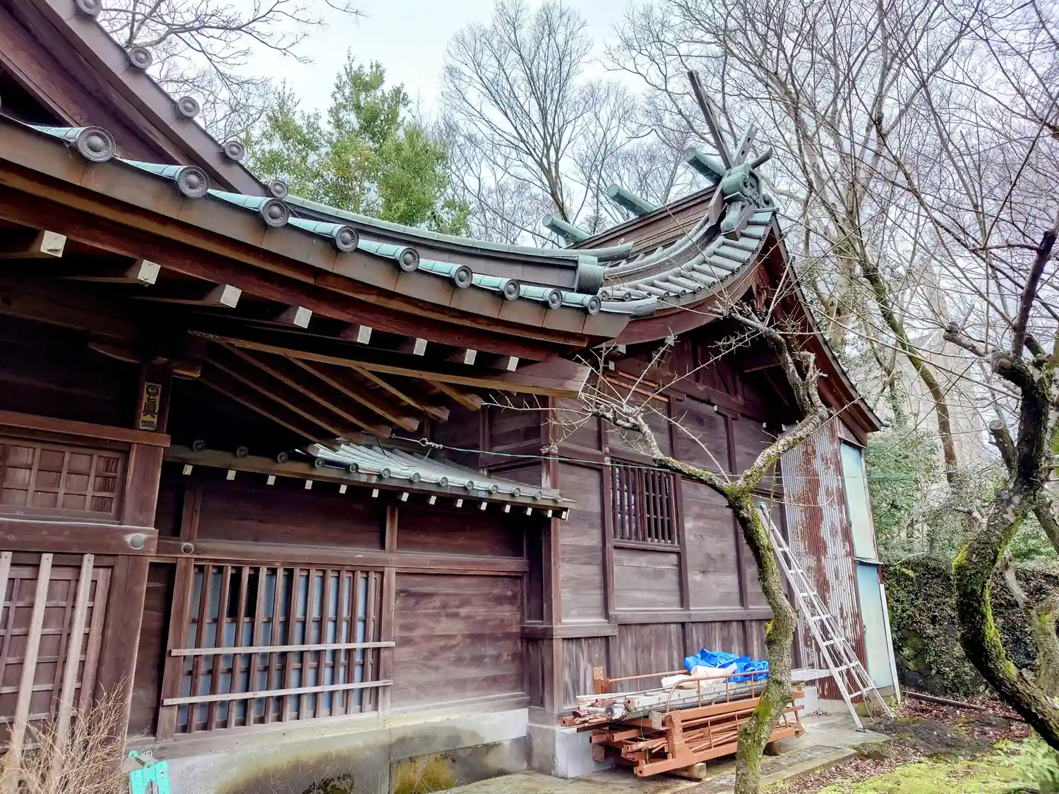 芝岡神社と一緒に参拝、社務所が建て替え中でした。