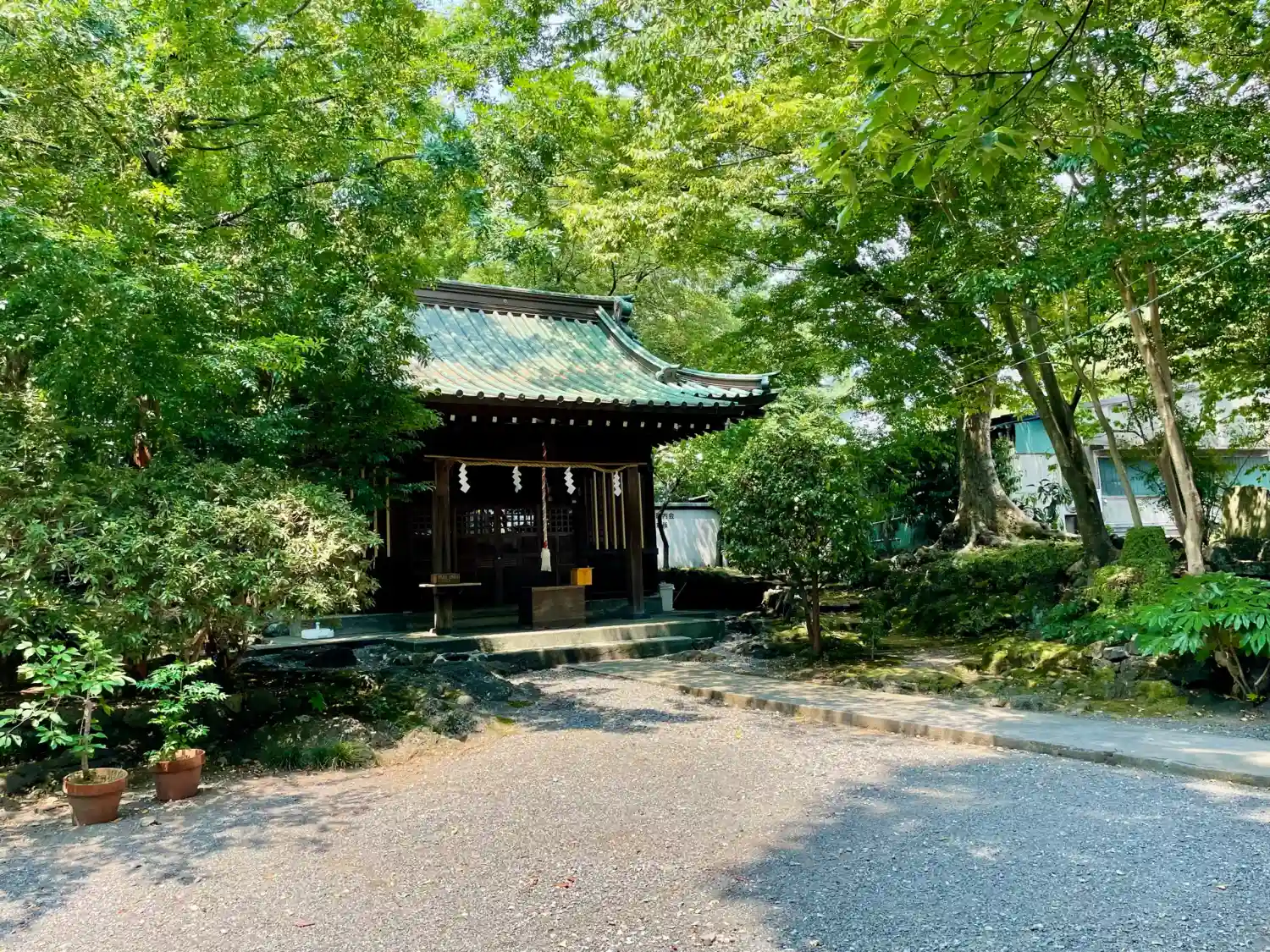 三島大社からトコトコ。水路に沿って歩きますと、小さな神社があります。