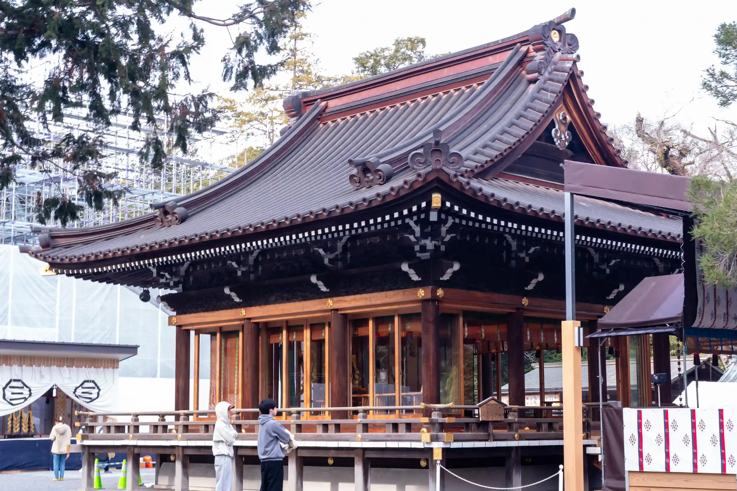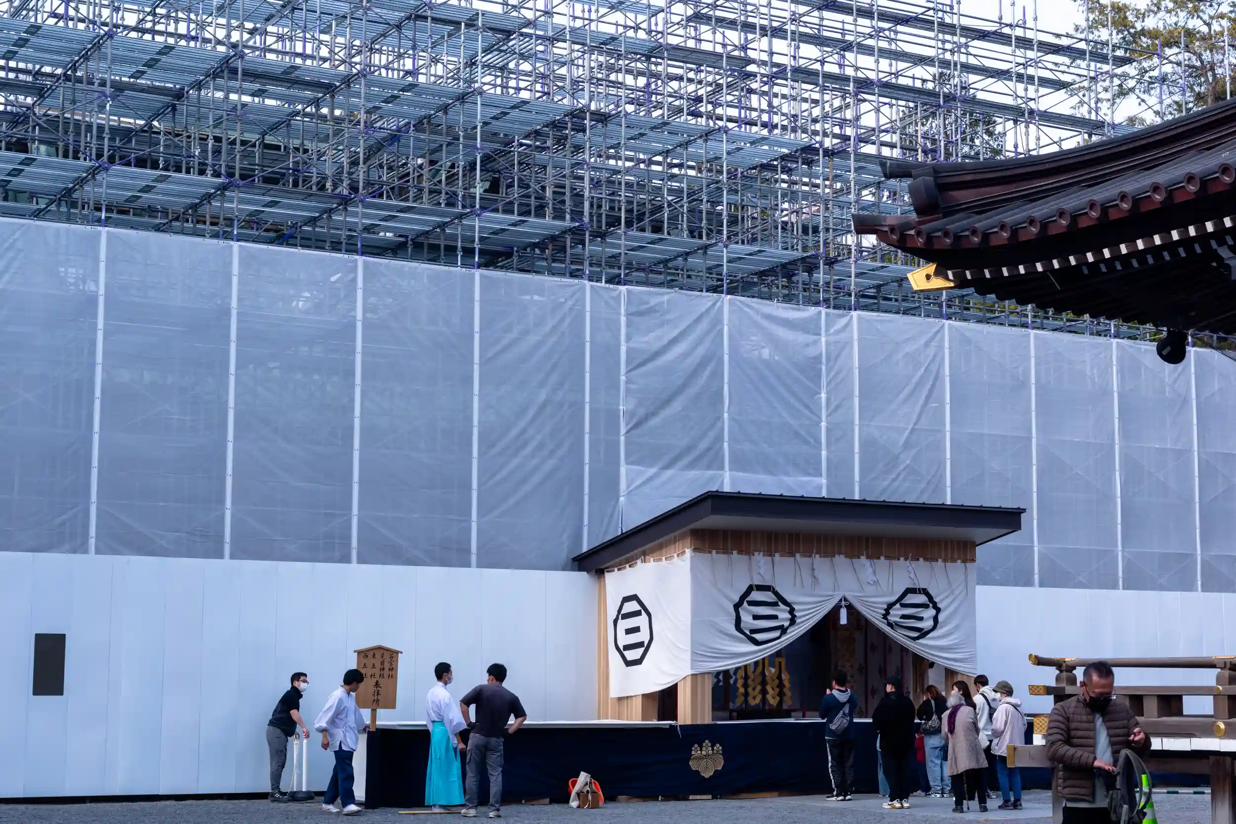 拝殿は修繕中でした💦