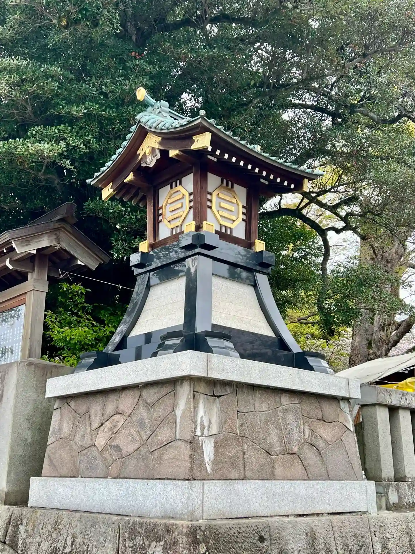 最近、ご神紋が気になるようになったのですが、三嶋大社の神紋は「折敷に三文字」で、お盆(折敷)の上に「三」の字を乗せたデザイン。この「三」は、祭神である大山祇命を祀る伊予の大山祇神社とも共通する、三嶋信仰を象徴する神紋とのこと。