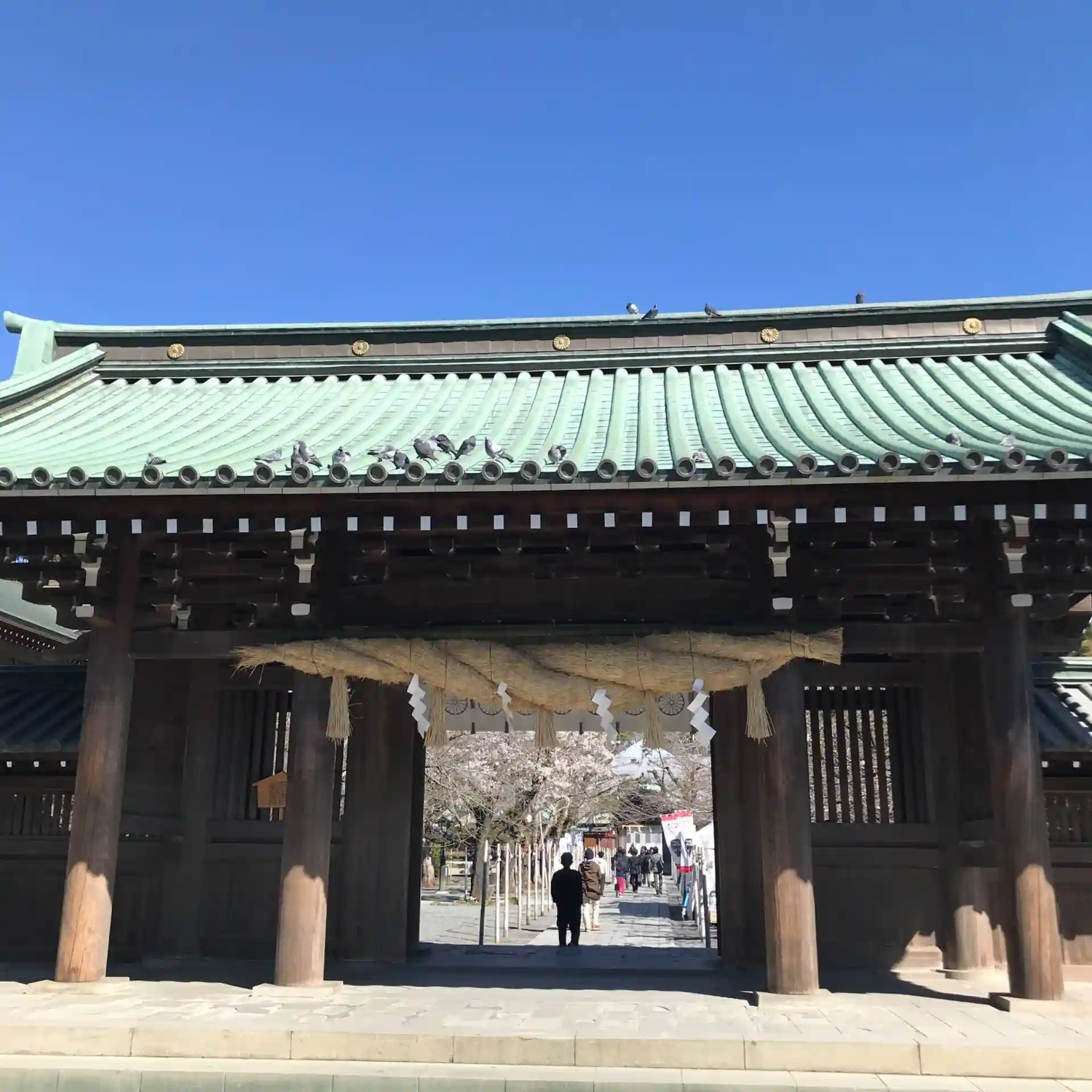 大鳥居から総門、神門、本殿に向かう一直線の道は素晴らしいです。残念ながら市の指定文化財の舞殿はちょうど修復中でシートに覆われていました。