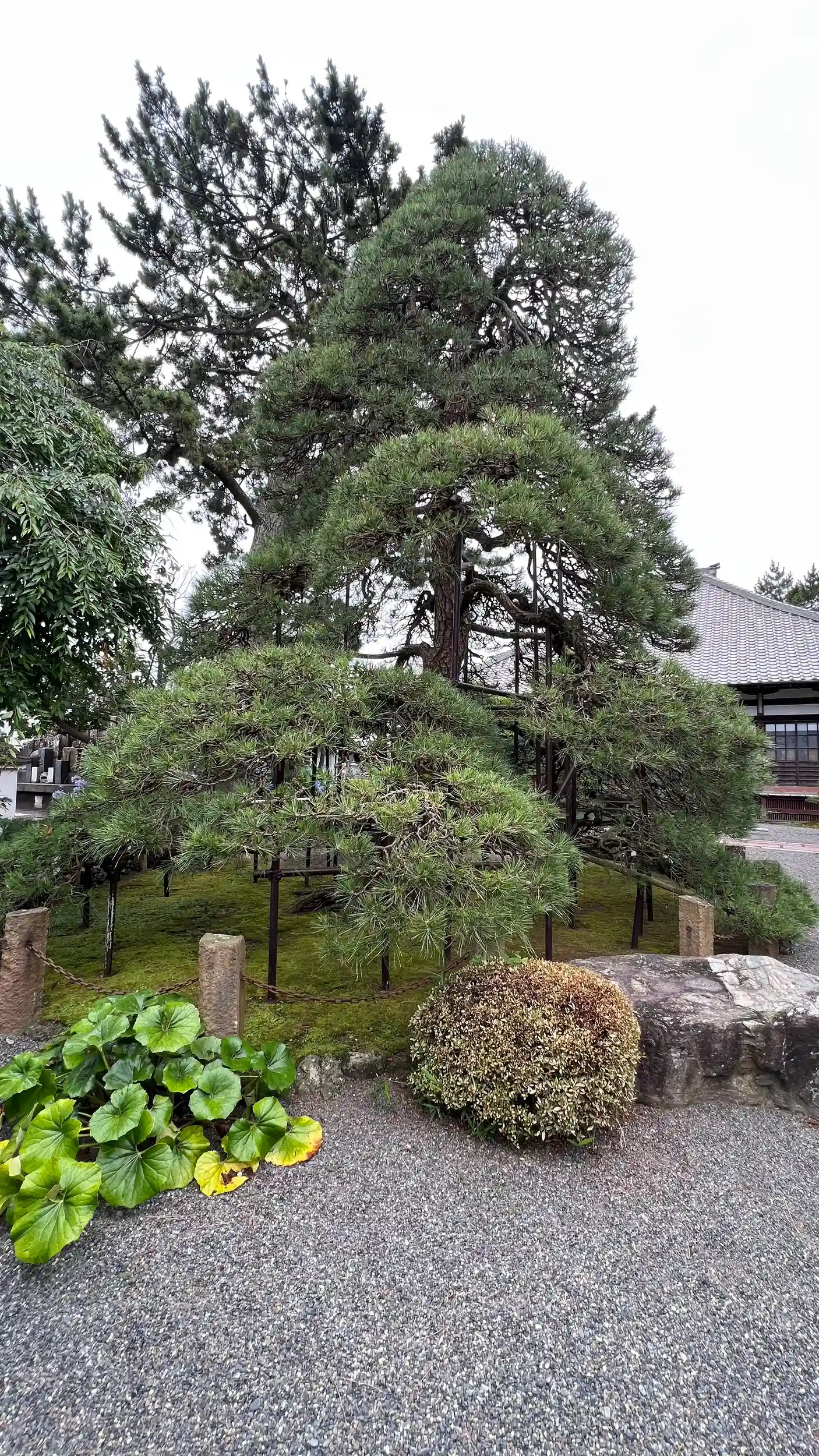 参道最後まで進めば大きな松の木と後ろに本堂。