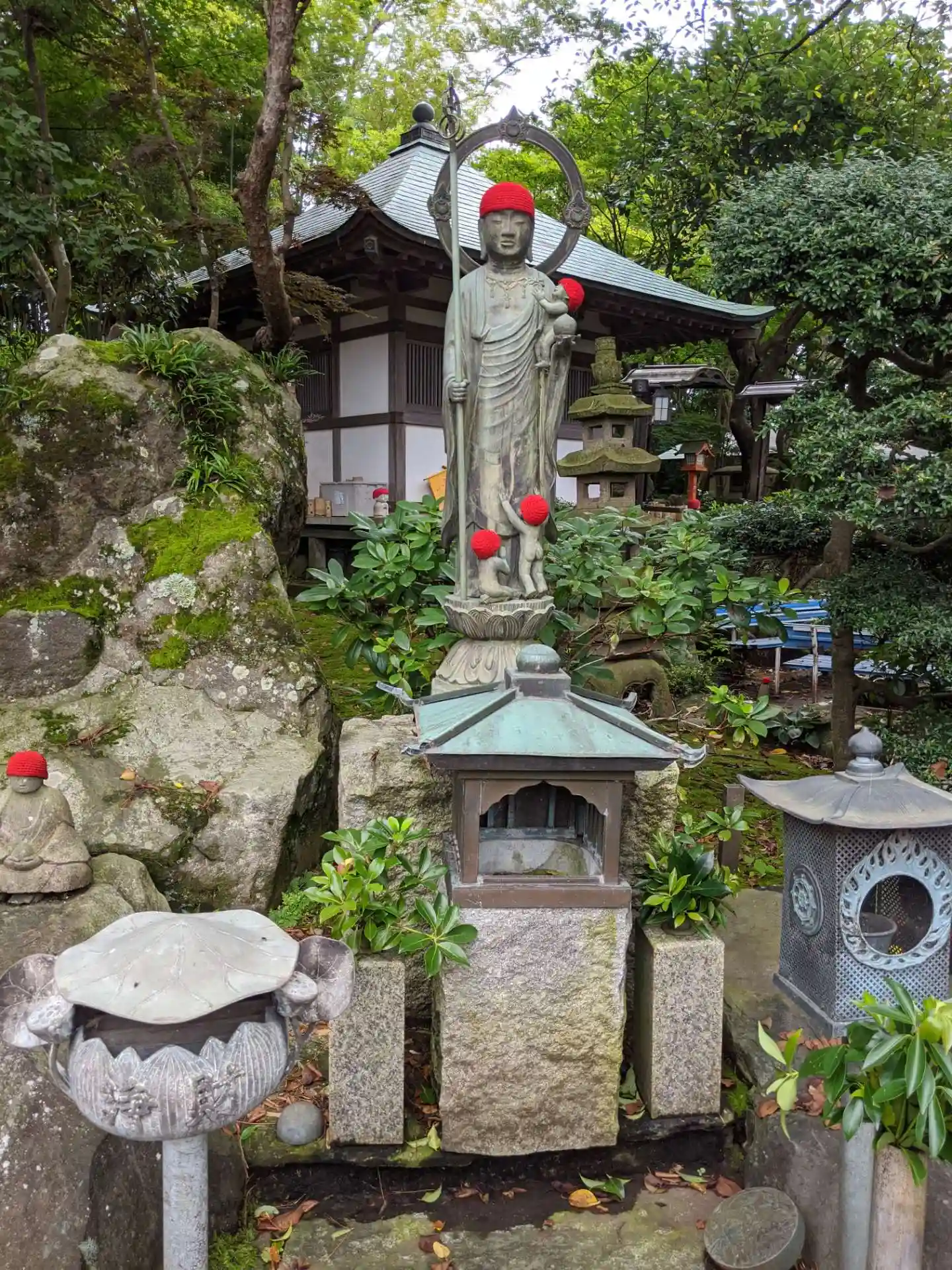 境内の至る所にいるお地蔵さんは檀家さんが、赤い帽子は隣の保育園の人が作ってくれたそうだ