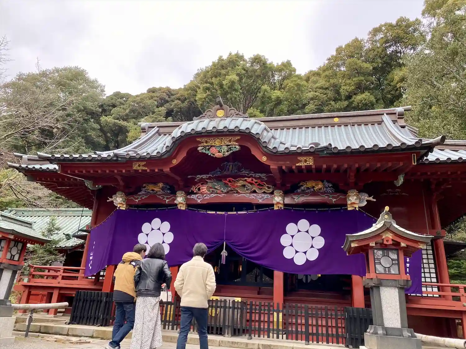本殿の彫刻もカラフルで綺麗です。