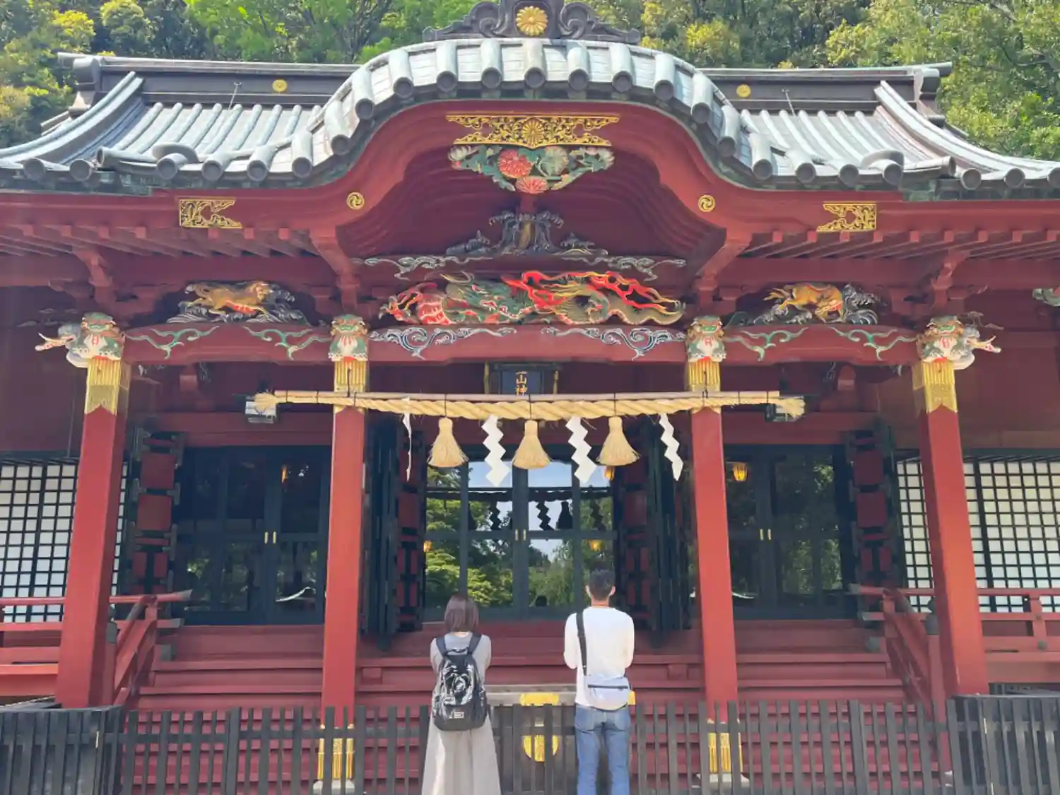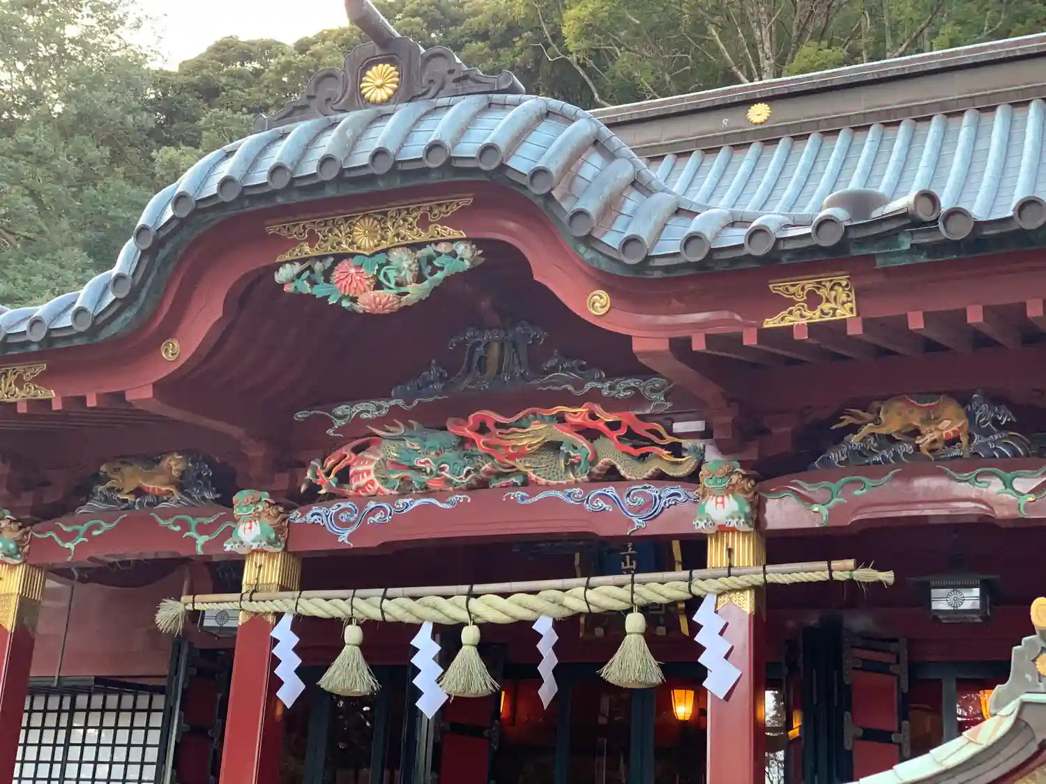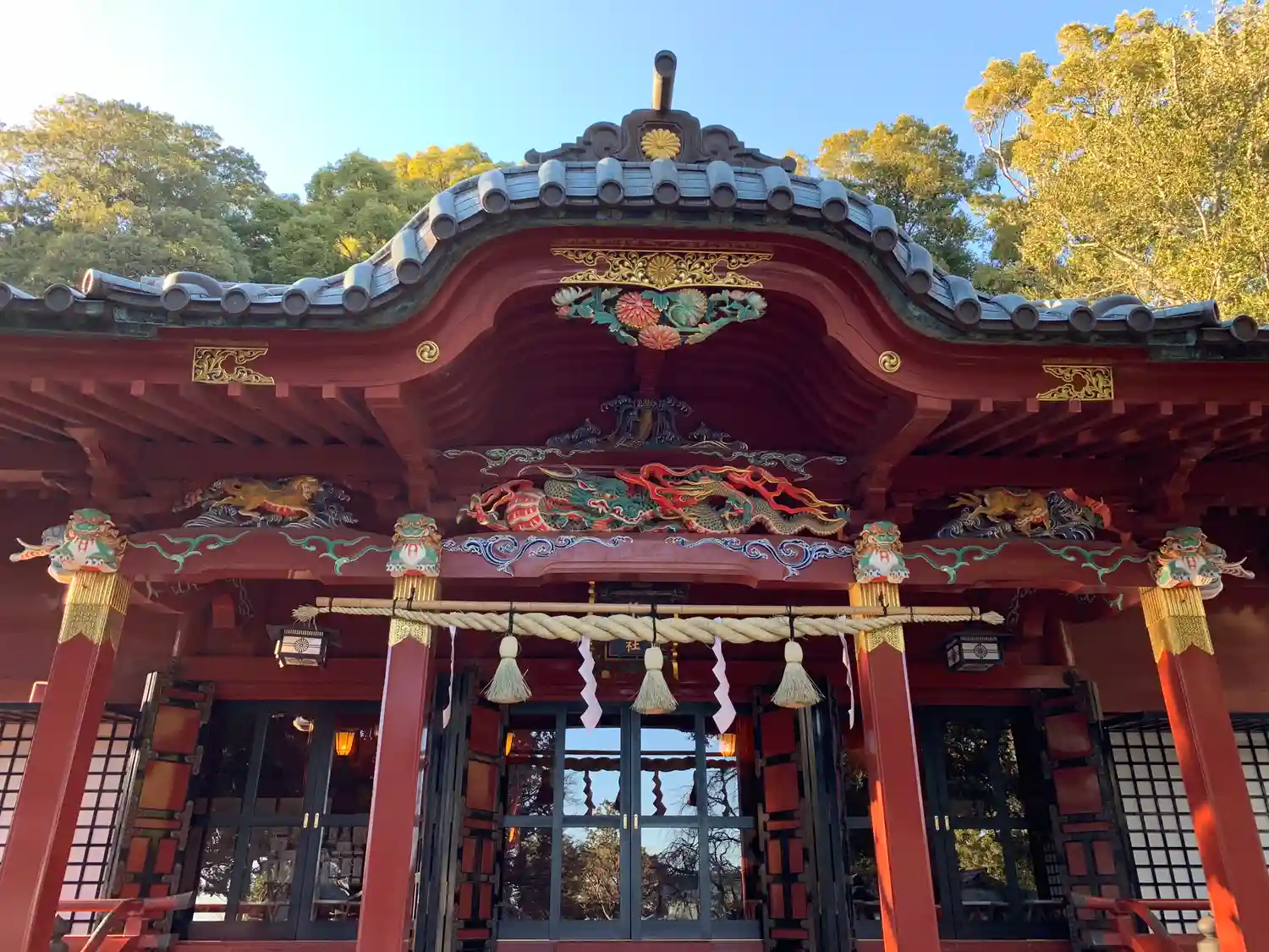 朱塗りの社殿に極彩色の彫り物が綺麗です。