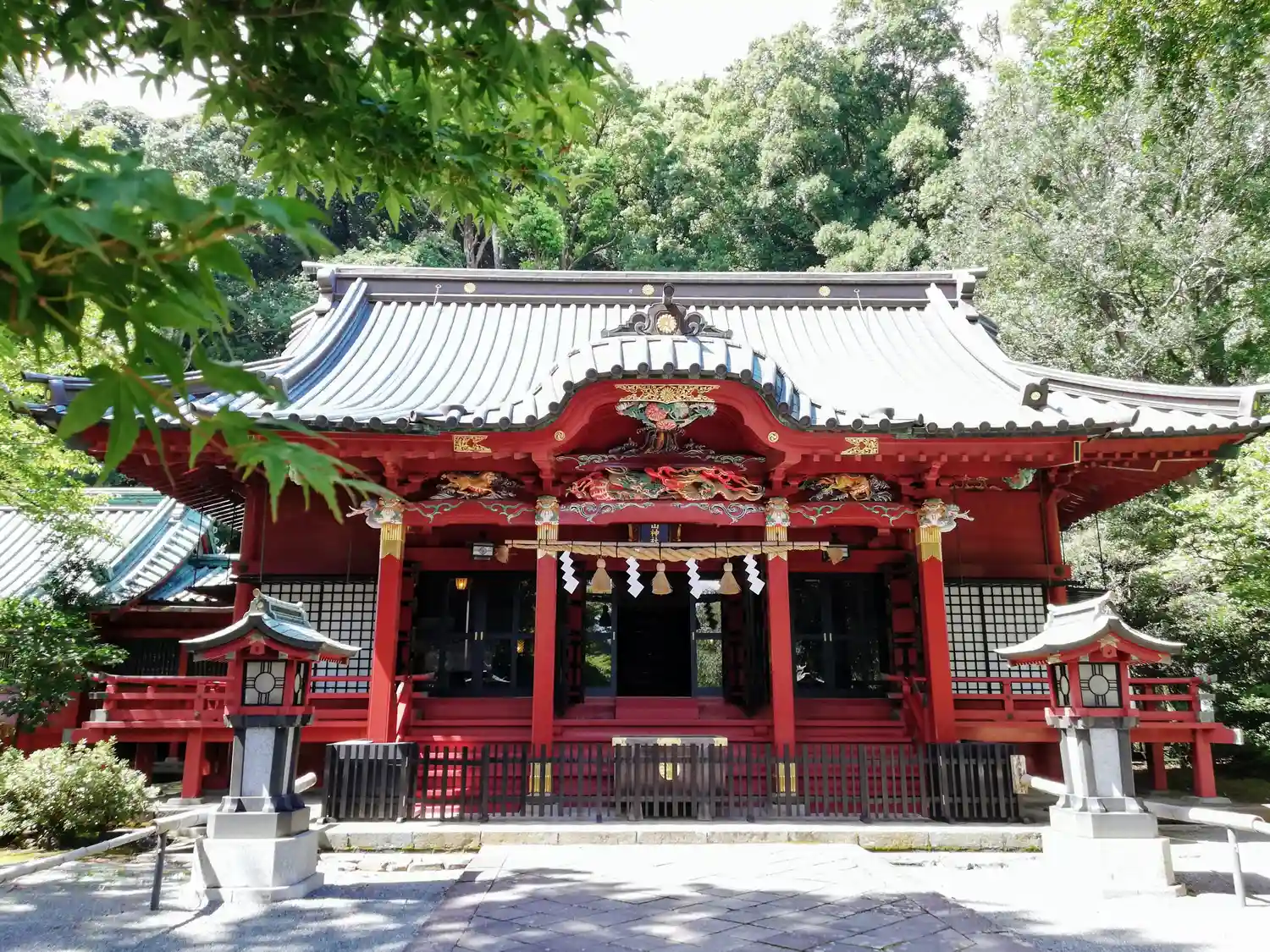 朱塗と彩色された彫刻のついたご社殿