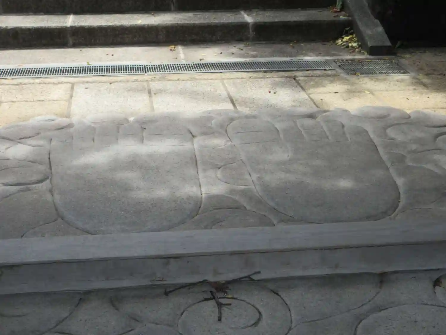 門をくぐると、大きな足型があった。