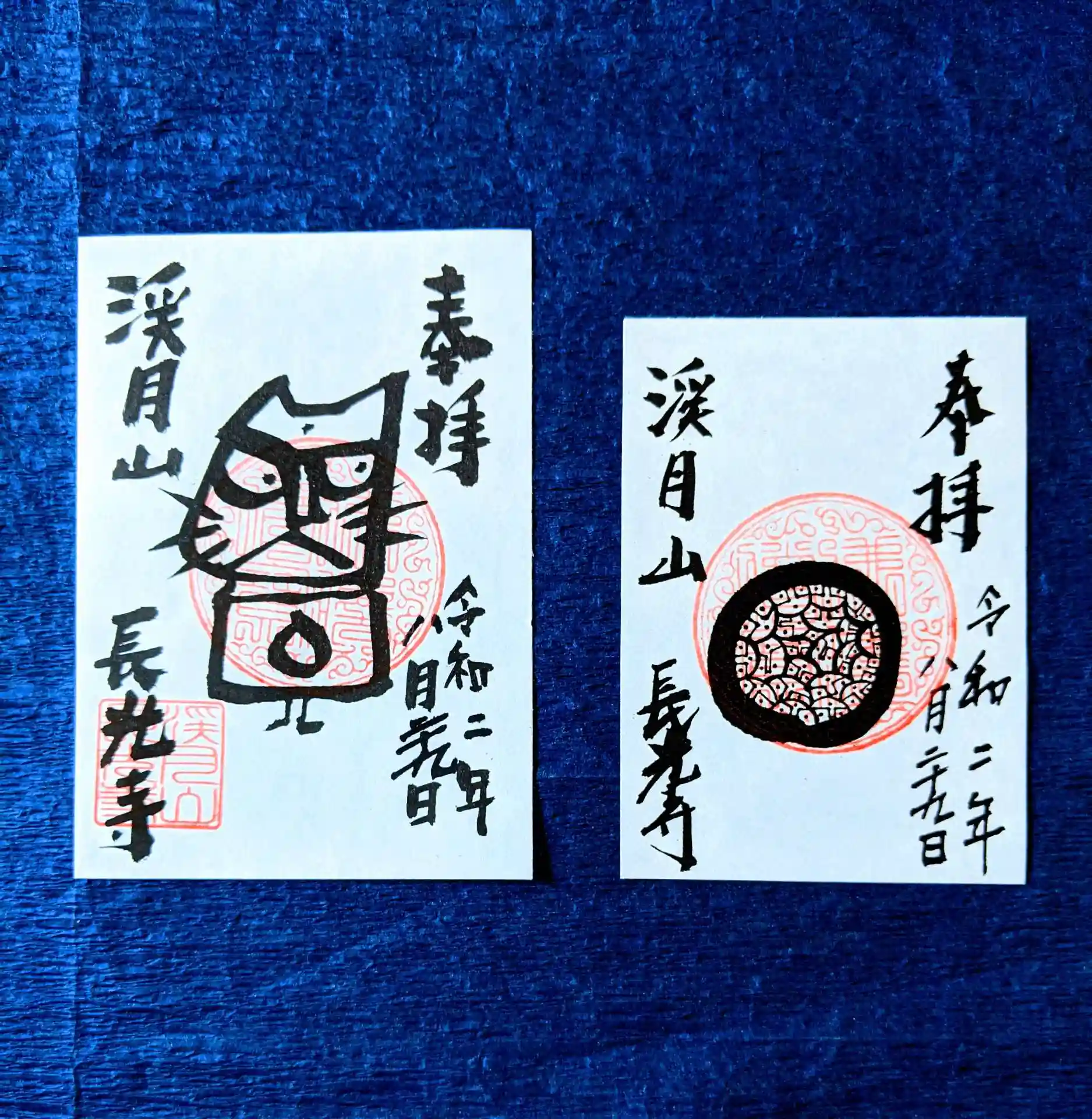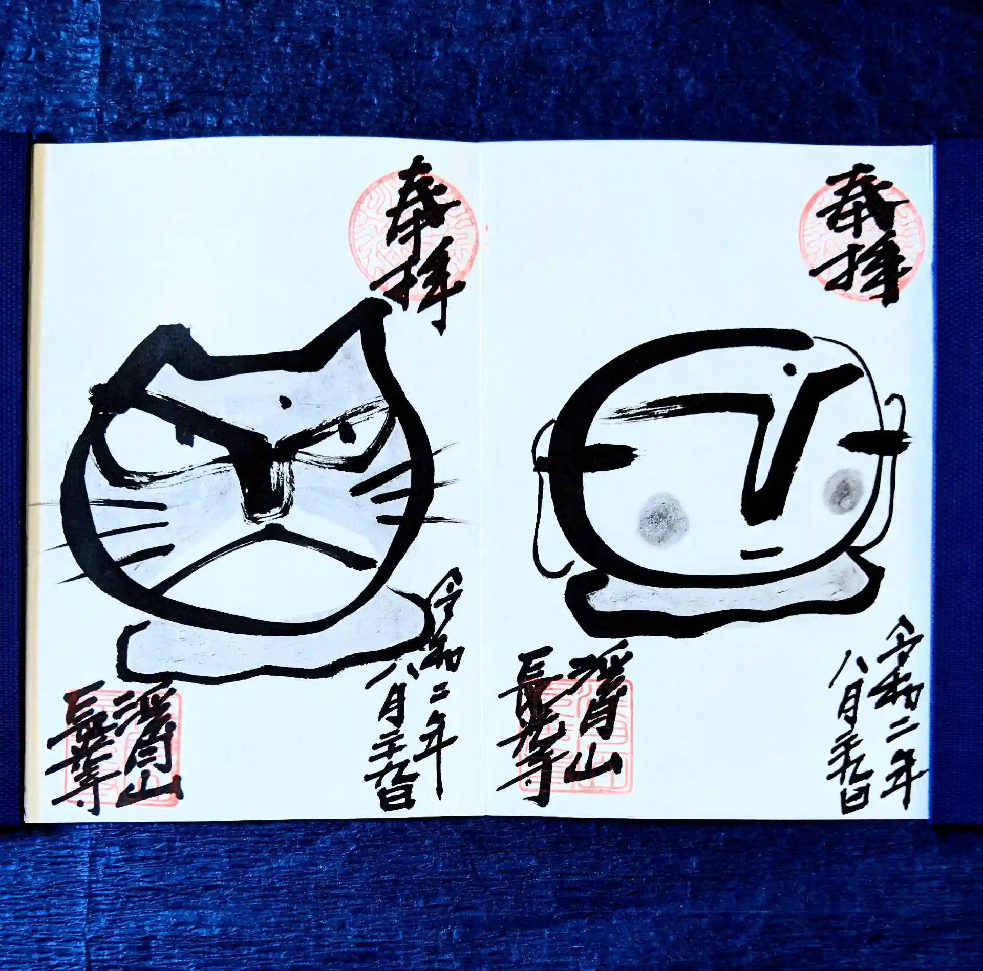 ご住職に描いて貰える絵は1回目は書き置き御朱印の①ですが、2回目以降はご住職おまかせになります。