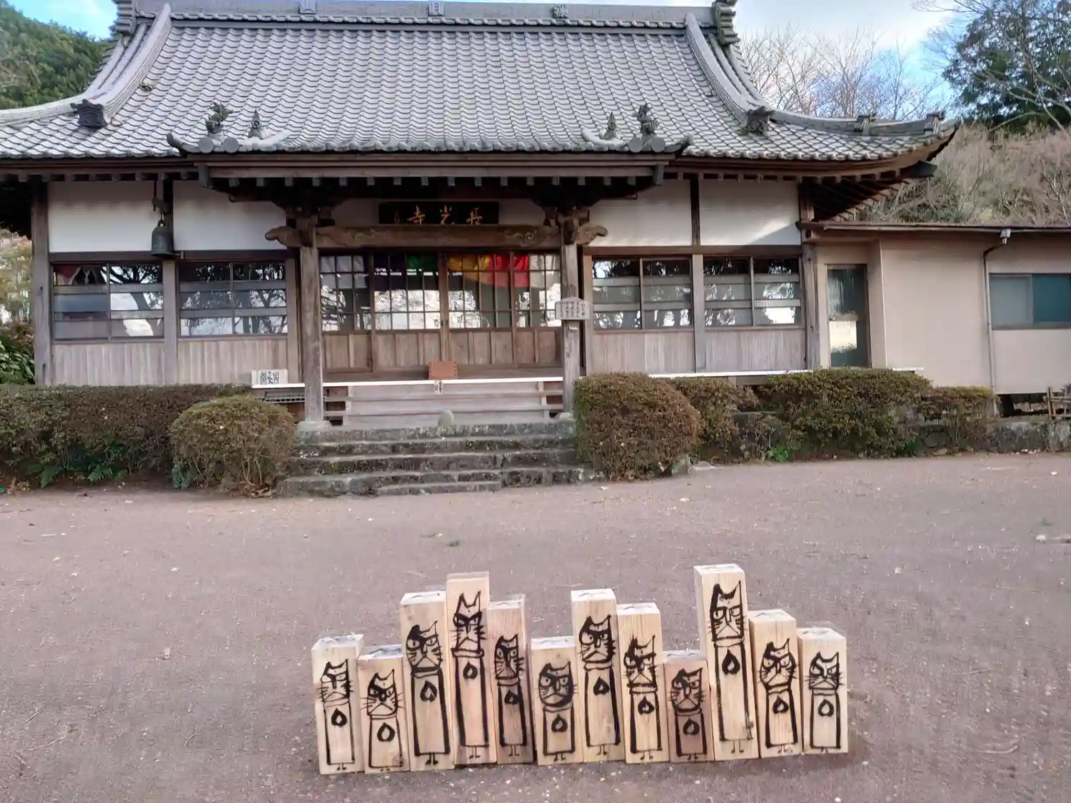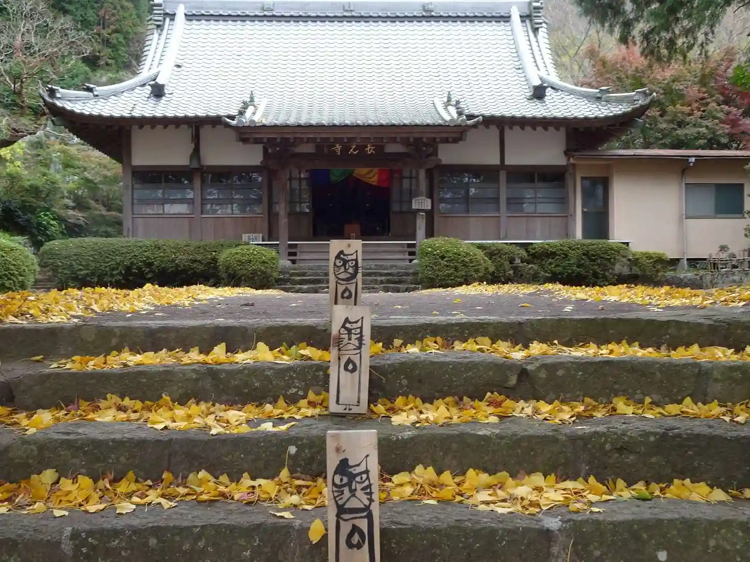 御本堂の中から猫さんがこっちを見ています。