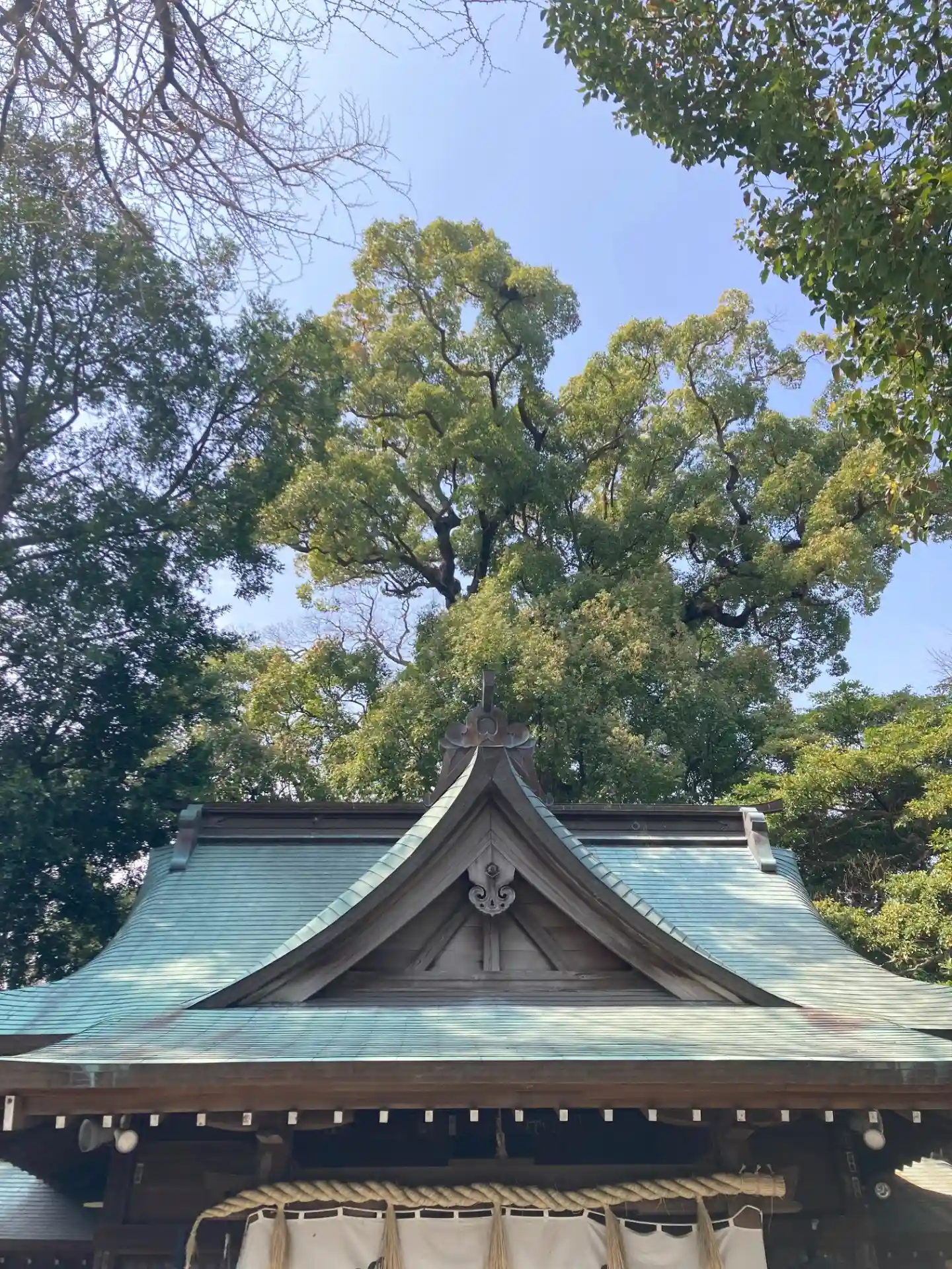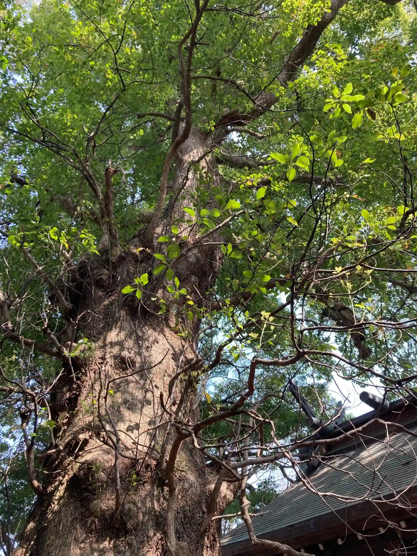 御神木 楠木と細いのがケヤキ、立派です。
