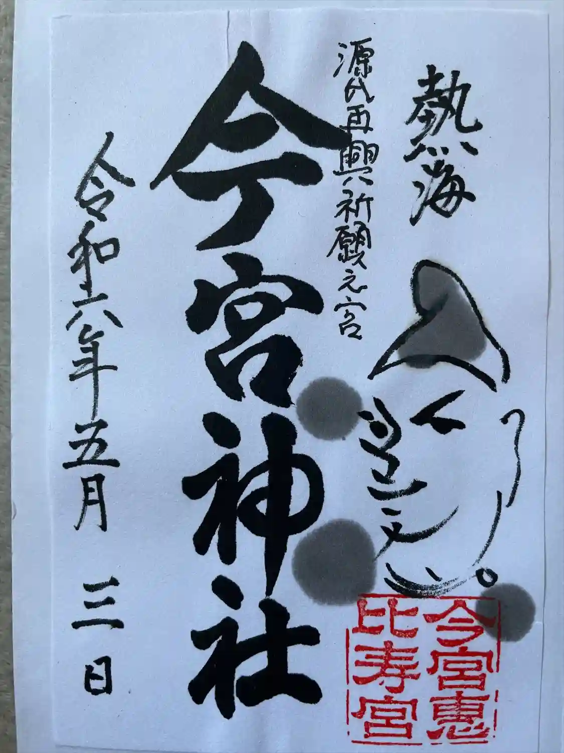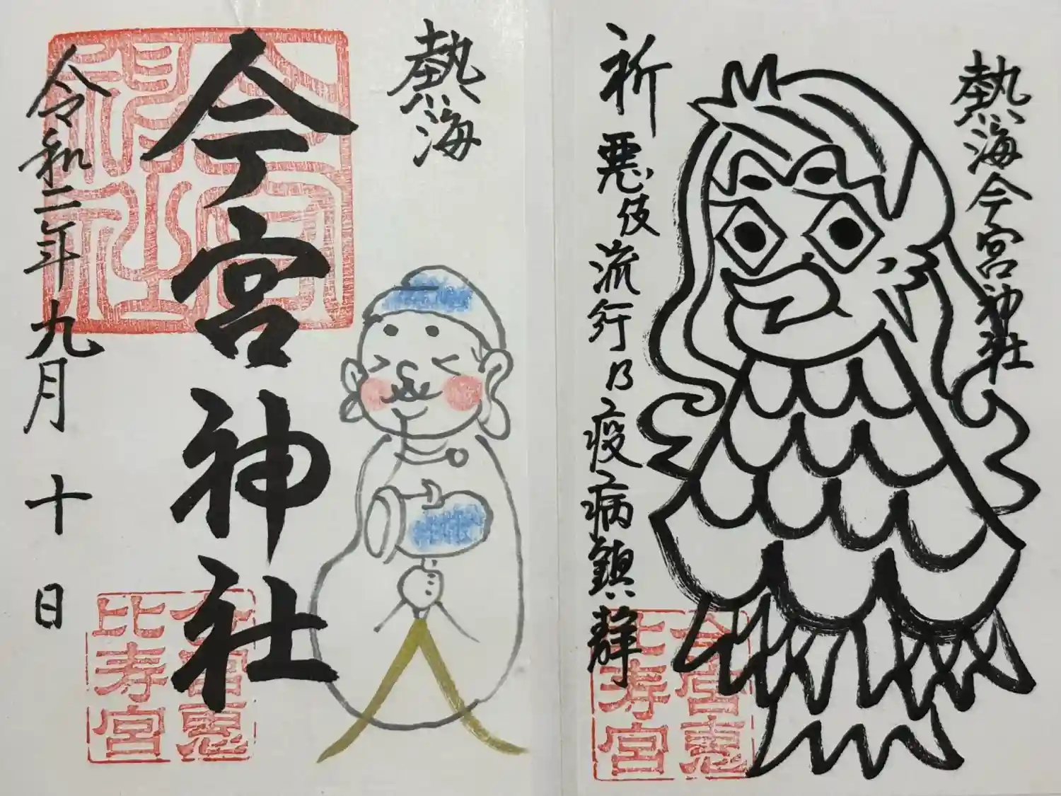 熱海市の今宮神社です。参拝して御朱印を二体頂いてきました。アマビエは無料で頂きました。