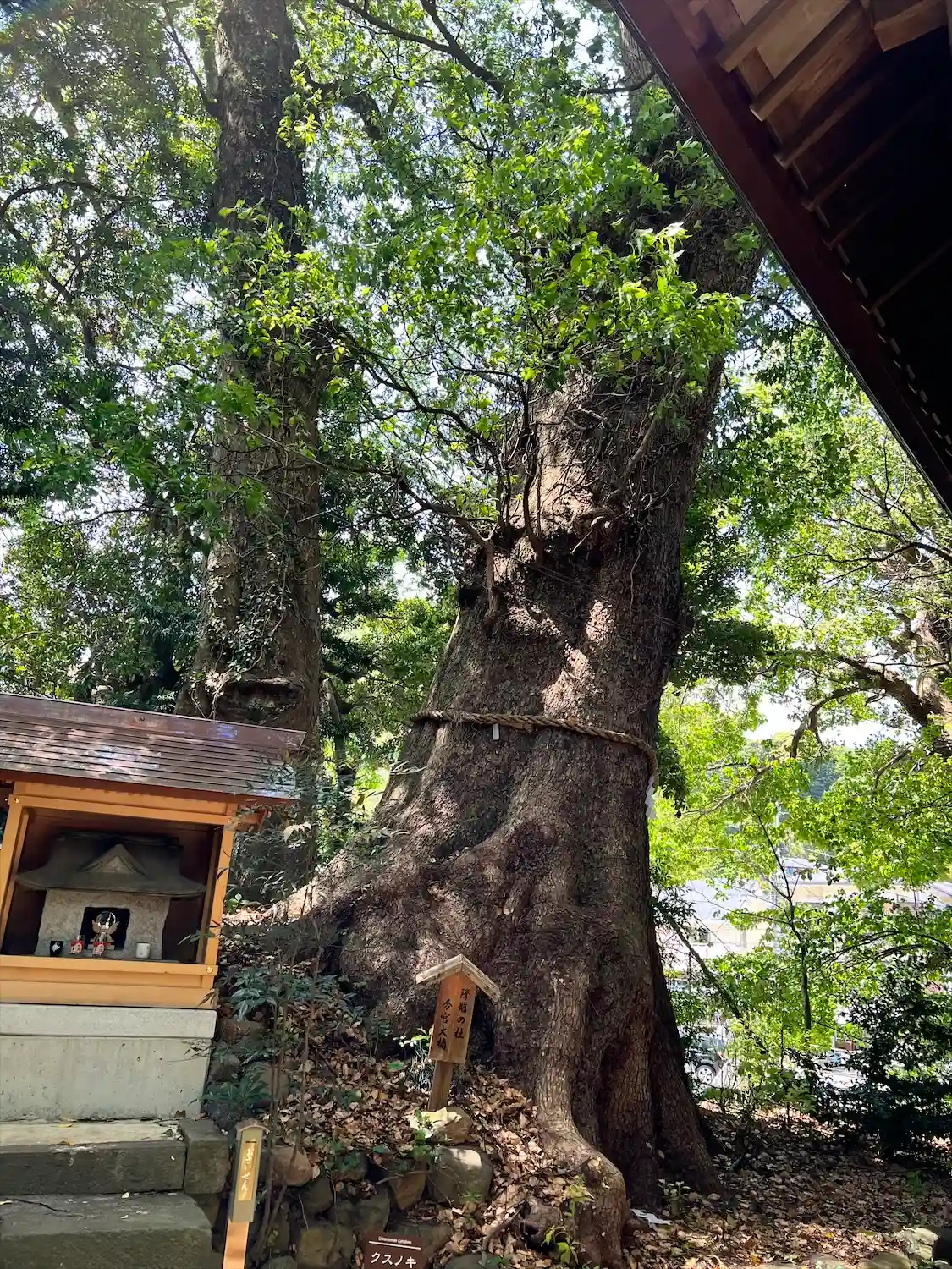左は御神木のクスノキ