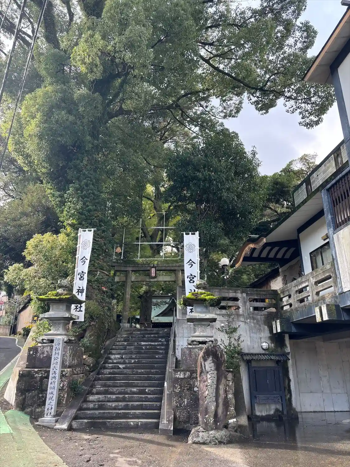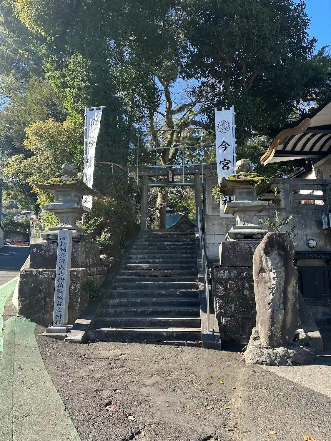 湯前神社のあとは少し南にある今宮神社へ。熱海の街の道路は狭くて曲がりくねっていて坂も多く運転が大変…